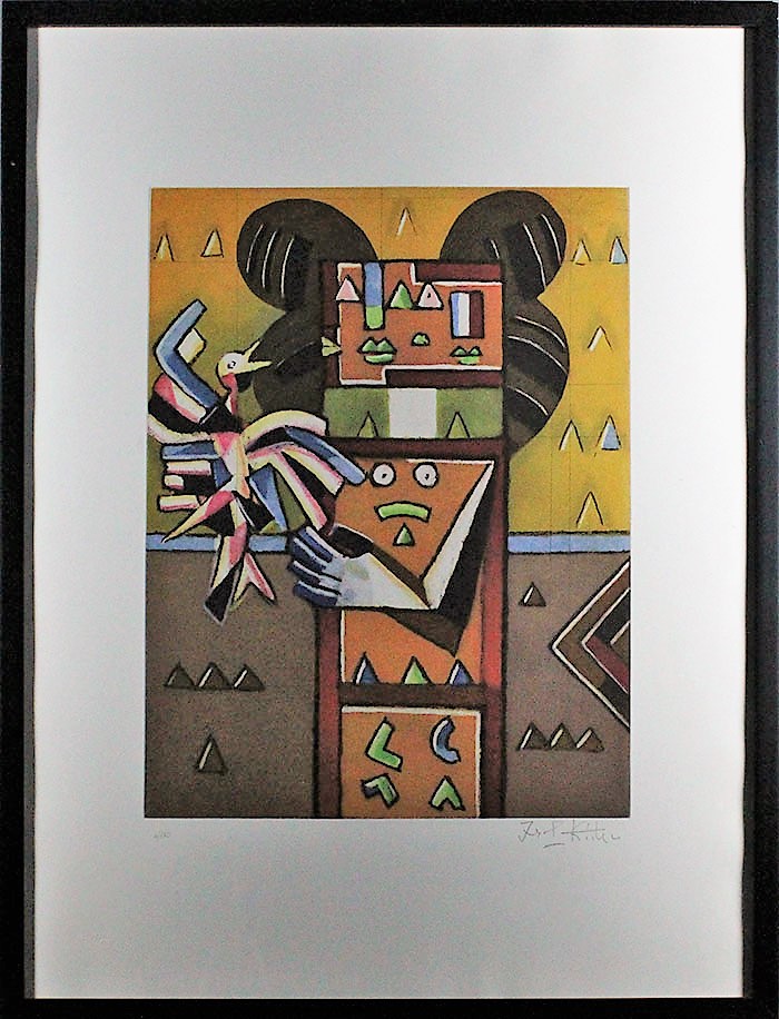IBRAHIM KODRA, "Pace", Acquaforte a 10 colori, Dim. 39x51,5 (formato opera), Dim.60x80 (formato foglio), Opera con certificato di autenticità redatto da "Prospettive d'arte" Milano sul verso, Tiratura: 1/130 - I / XXX, Al fronte: esemplare N° 6/130, timbro a secco "Prospettiva d' arte" in basso a sinistra e firmato in basso a destra, Con cornice