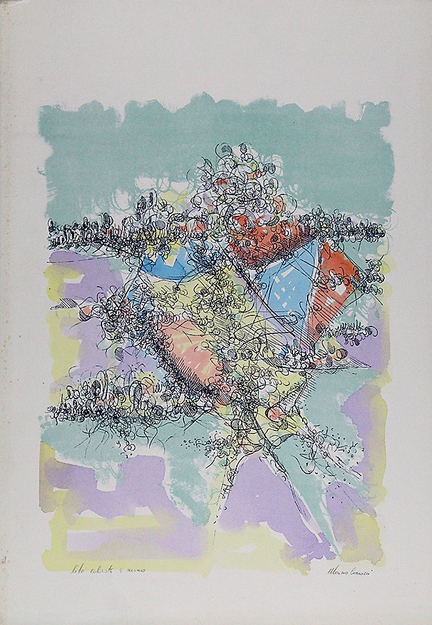 MARINO CONSANI, Senza titolo, Litografia acquarellata a mano, Dim. 50x35, Al verso: tecnica in basso a sinistra e firmato in basso a destra, Opera senza cornice