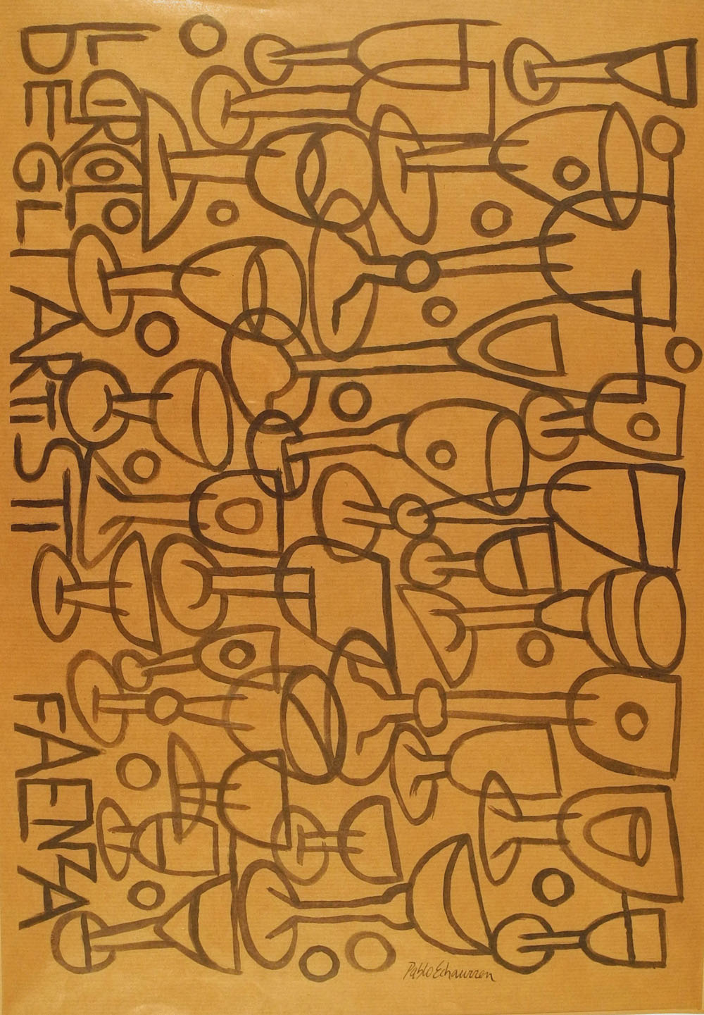 PABLO ECHAURREN (Roma,1951) "Il circolo degli artisti, Faenza" tecnica mista su carta cm 49x34 Firmata