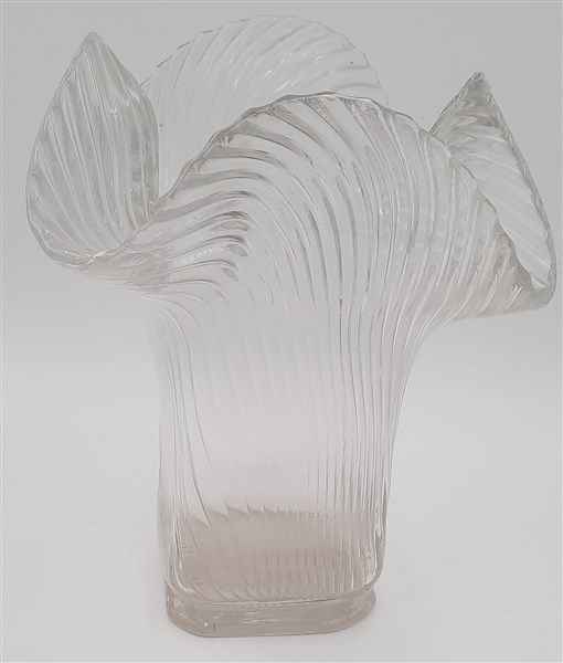 Vaso a fazzoletto in vetro cristallo. Austria, seconda metà secolo XX. Firmato all'acido sotto la base. (h cm 28)