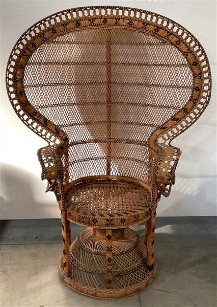Poltrona "Pavone" in midollo e scortecciato di giunco. Produzione orientale. Secolo XX. (cm 108x145x55) (difetti)