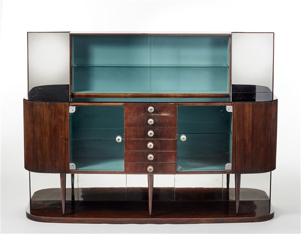 Luigi Scremin (Attribuito) Buffet con parte centrale a cassetti e vetrine e part