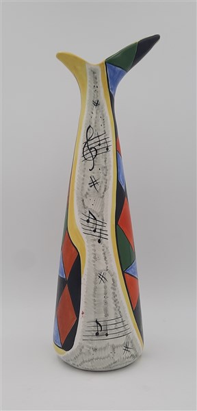 Vaso in ceramica smaltata in policromia e con pentagrammi musicali