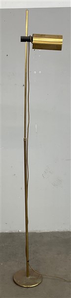 Lampada alogena da terra in ottone con paralume regolabile in altezza e orientabile. Italia, anni '80. (h cm 193) (lievi difetti)