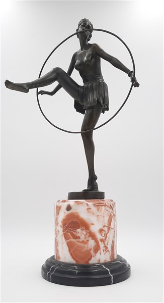 Scultura a tutto tondo in fusione metallica raffigurante una ballerina su base in marmo. Italia, secolo XX. (h cm 48,5) (lievi difetti)