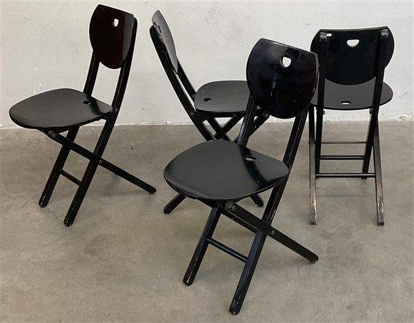 Lotto composto da quattro sedie pieghevoli in legno verniciato nero. Italia, se