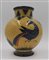 Vaso in ceramica con decoro di volatile su fondo giallo. Pesaro, 1925ca. Firmato e con simbolo grafico della manifattura sotto la base. (h cm 23) (lievi difetti)