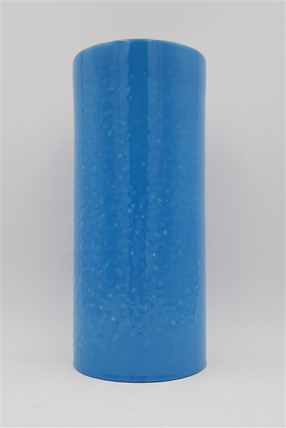 Studio A Vaso cilindrico in ceramica smaltata in turchese. Albisola, anni '70/'8