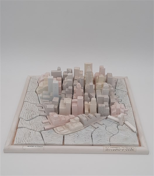 Rappresentazione tridimensionale della penisola di Manhattan parte della collezione “Le Città“. Gesso colorato. (cm 33x33) (difetti)