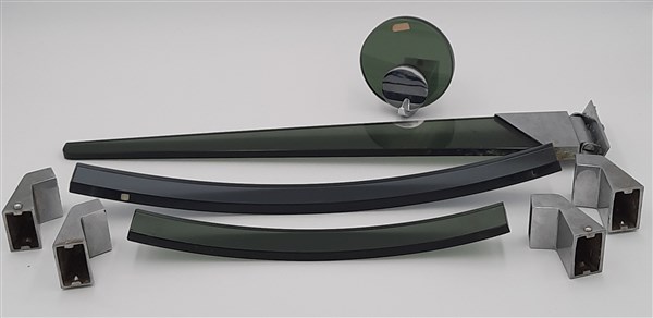 Lotto composto da uno specchio e un set da bagno formato da un appendino e tre portasciugamani. Milano, anni '60. Metallo cromato e vetro fumè. (d specchio cm 68) (difetti)
