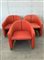 Lotto di tre poltroncine su rotelle modello "P142". Produzione Tecno, Varedo, 1969. Rivestimento in tessuto rosso. (cm 67x68x56) (difetti)