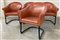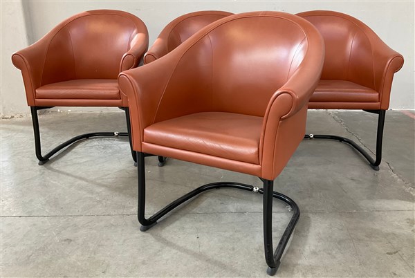 Lotto composto da quattro poltroncine con struttura in tubolare di acciaio verniciato nero, rivestimento in pelle marrone. Torino, seconda metà secolo XX. Marcate. (cm 67x85x60) (lievi difetti)