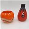 Lotto composto da un vaso di Delatte in vetro arancione con decori lattimo e neri, firmato “DELATTE NANCY” e un vaso Daum in ceramica arancione con parte inferiore maculata su fondo beige. Anni '20/'30. (h max cm 15,5) (lievi difetti)