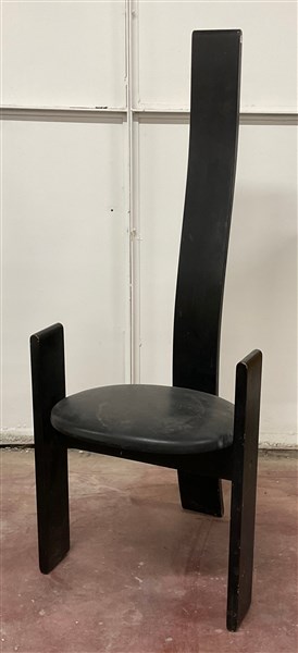 Sedia modello "Golem". Esecuzione Poggi, Pavia, 1968. Legno laccato nero, sedile rivestito in pelle nera. (cm 50x126x55) (difetti)