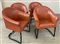 Lotto composto da quattro poltroncine con struttura in tubolare di acciaio verniciato nero, rivestimento in pelle marrone. Torino, seconda metà secolo XX. Marcate. (cm 67x85x60) (lievi difetti)
