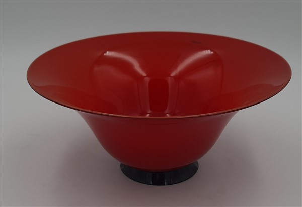 Ciotola della serie "Opalini". Murano, 2007. Vetro incamiciato rosso. Disegno n°500.2. Firmato e datato a punta sotto la base e recante etichetta adesiva della manifattura. In scatola originale. (h cm 11,5; d cm 25)