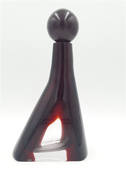Vaso bottiglia con tappo in vetro sommerso trasparente incolore e ametista scuro. Murano, anni '50/'60. Firmato a punta sotto la base. (h cm 30)