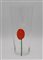 Vaso in vetro trasparente incolore decorato con un tulipano in pasta vitrea verde e rosso. Italia, produzione recente. Firmato a punta alla base. (h cm 32)