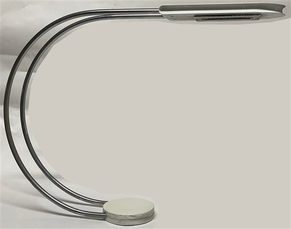 Lampada da soffitto modello "Gesto". Produzione Skipper, Italia, 1975. Diffusore e sostegno in metallo laccato bianco, struttura in acciaio. (cm 100x73x19) (lievi difetti)