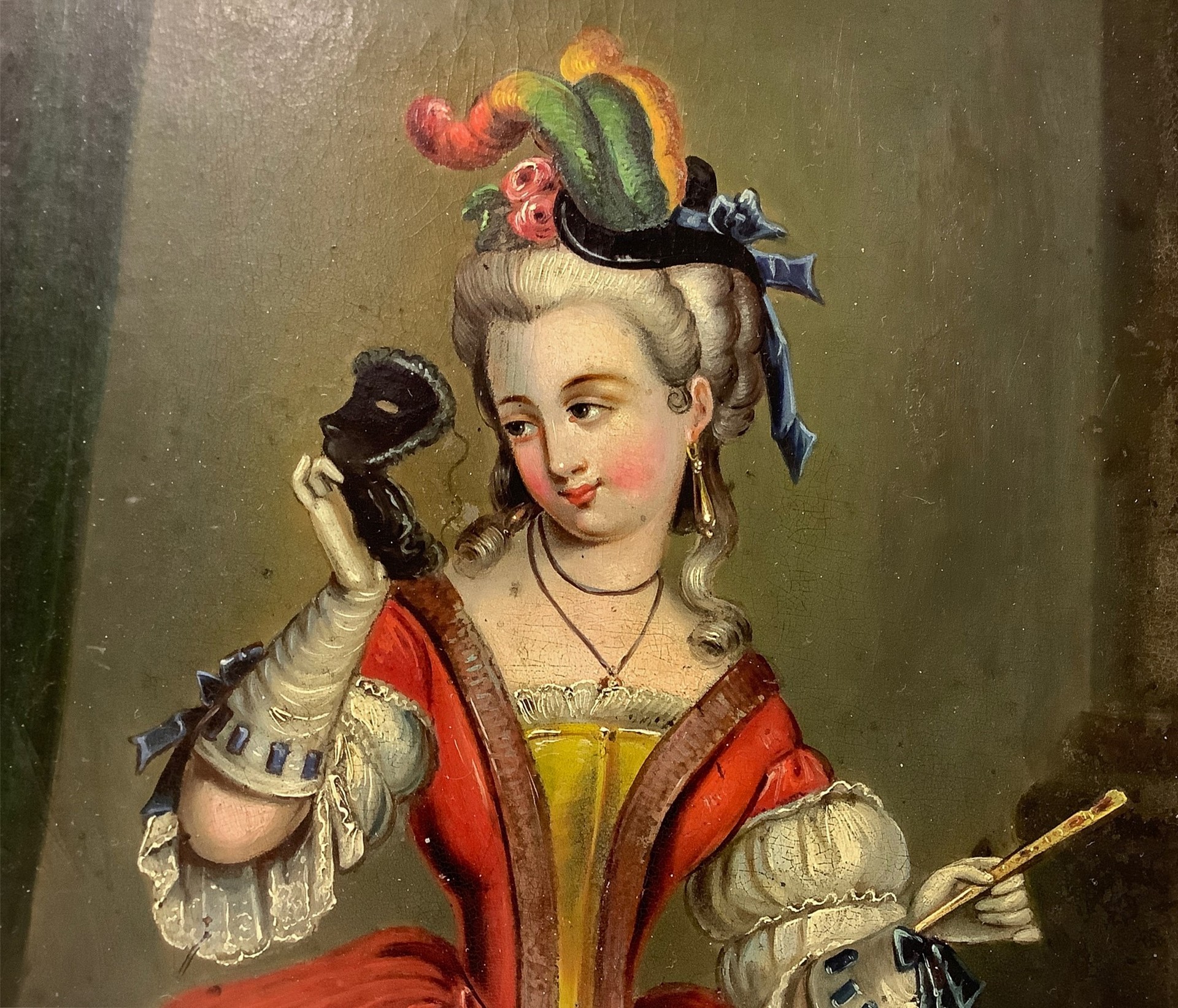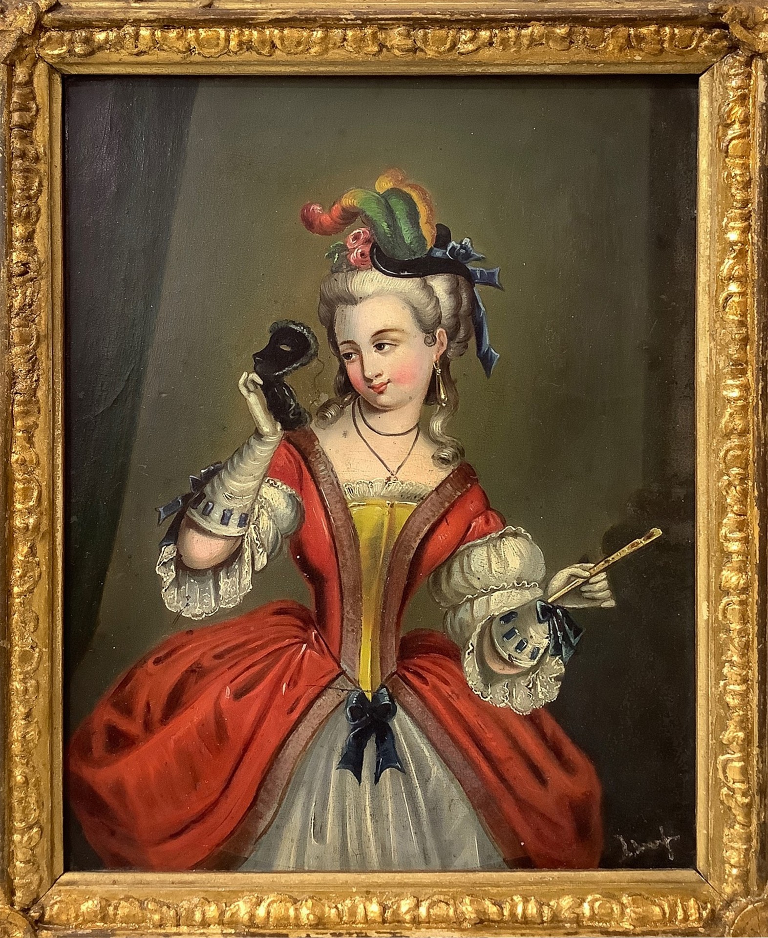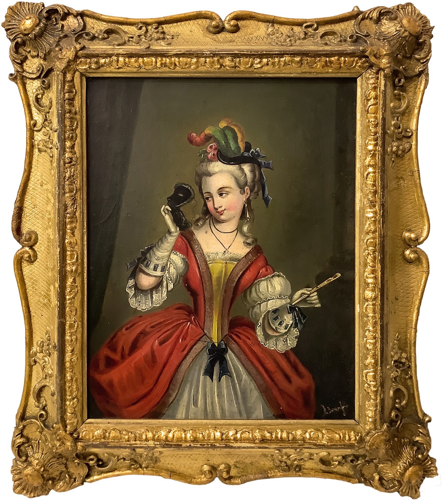 Louis Tocqué (attribuito a) (Parigi 19 novembre 1696-Parigi 10 febbraio 1772) - Dama veneziana in costume carnevalesco, nineteenth century 24x19 cm, in cornice 32x26 cm Dipinto a olio su tela