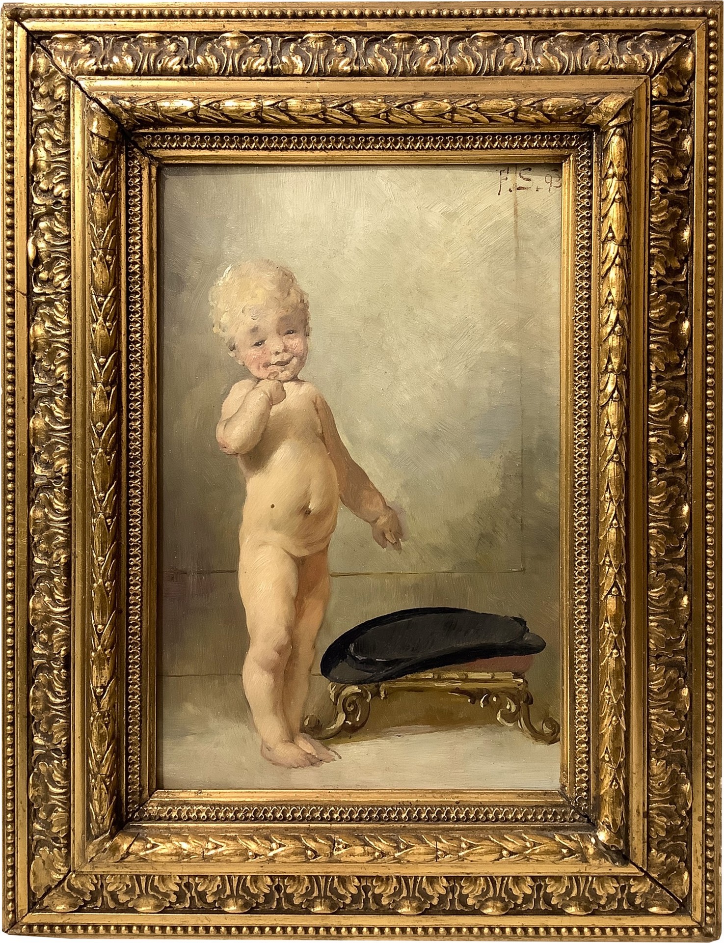 Sommer, Ferdinand (1822-1901) - Bimbo in posa - In piedi, nineteenth century 25x17 cm, 37x29 cm Dipinto a olio su tavola Firmato in alto a destra F. Sommer e datato 1893