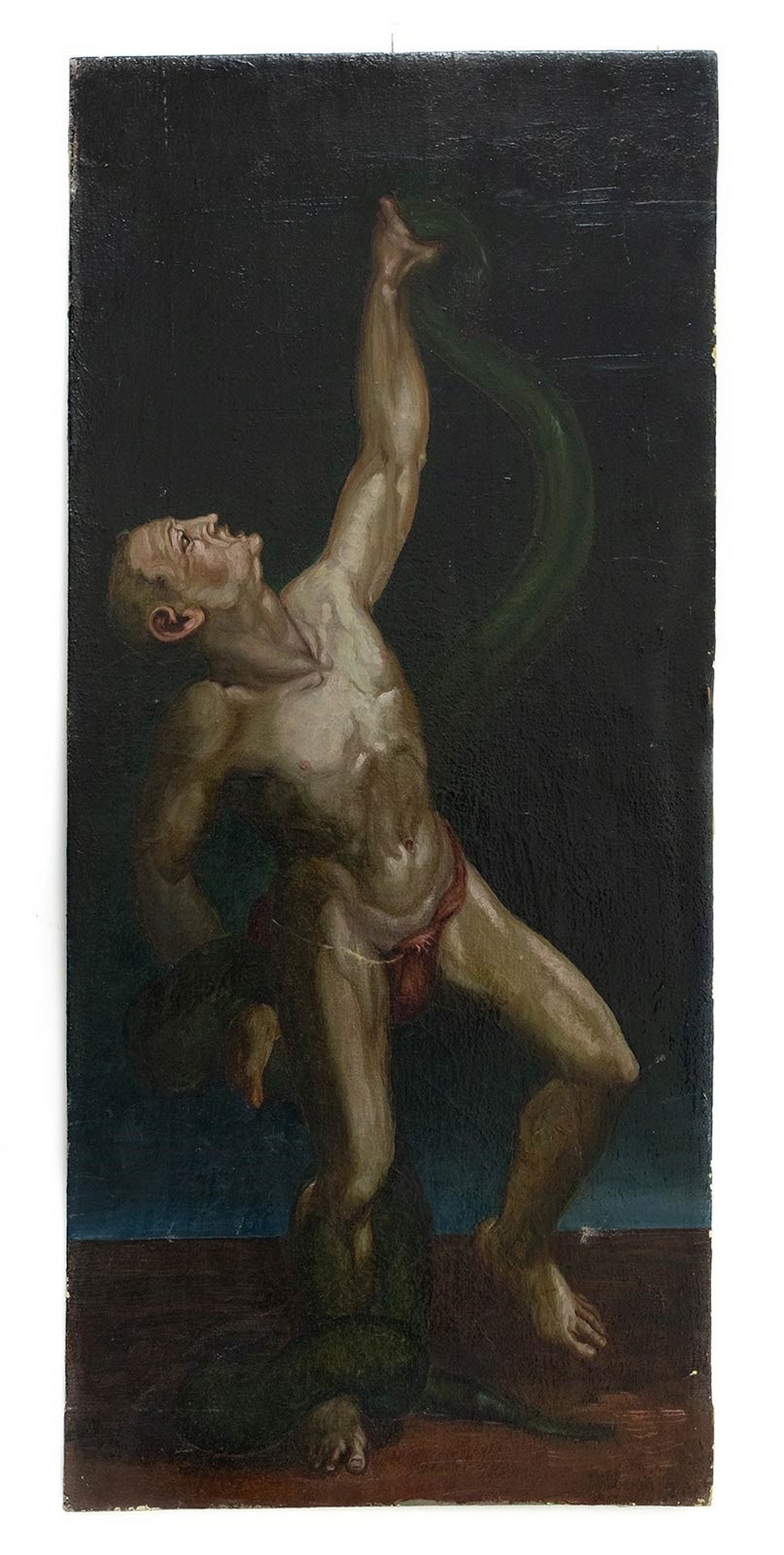 Vizzotto Alberti, Giuseppe (Oderzo 1862-Venezia 1931) - Uomo con serpente , Nineteenth century 90X40 cm Dipinto ad olio su tela