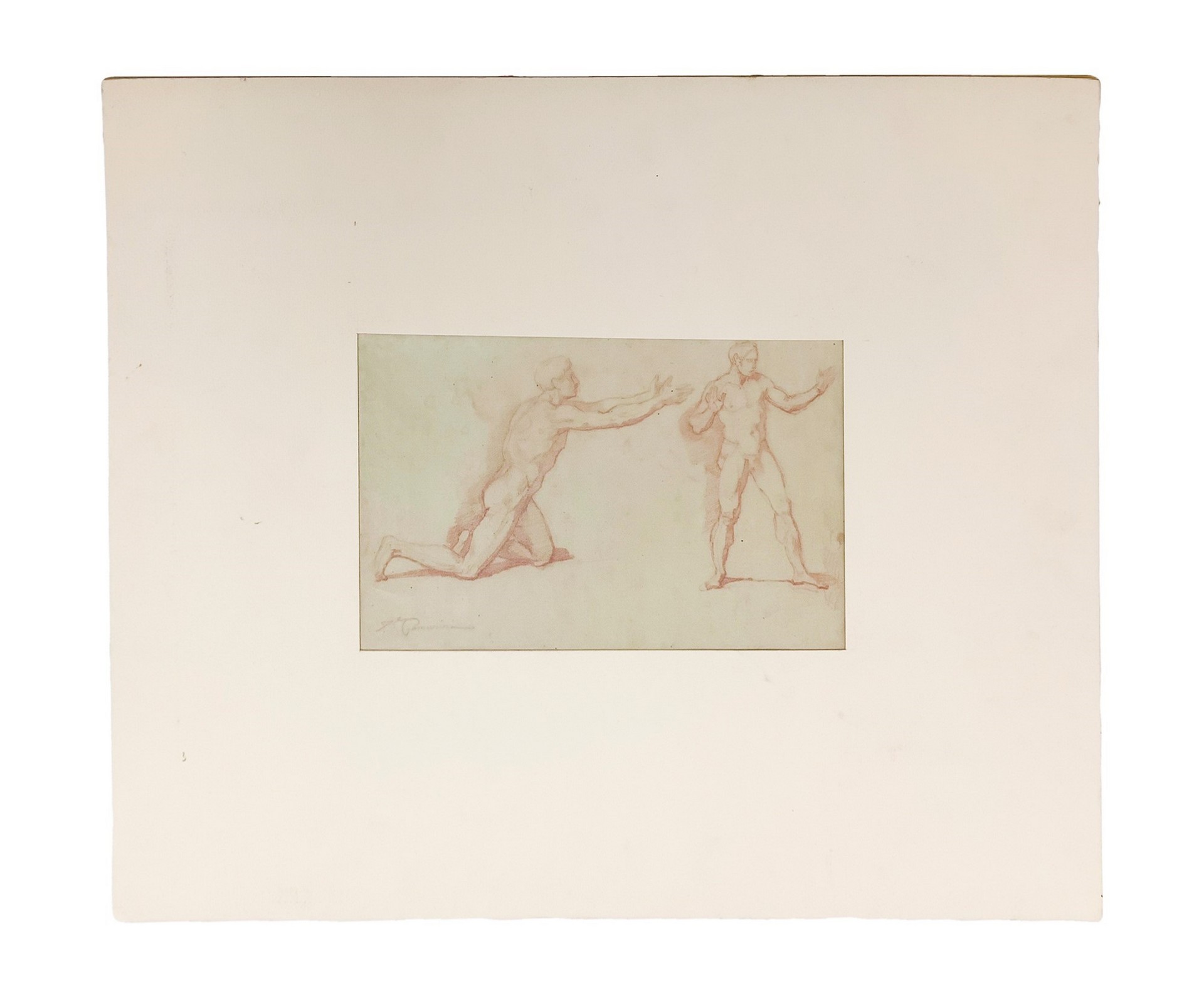 Camuccini, Vincenzo (Italian 1771-1844) - Studio di due nudi maschili, nineteenth century H 18 cm x Base 27 cm. Con passepartout: H 46,6 cm x Base 55 cm Sanguigna su carta