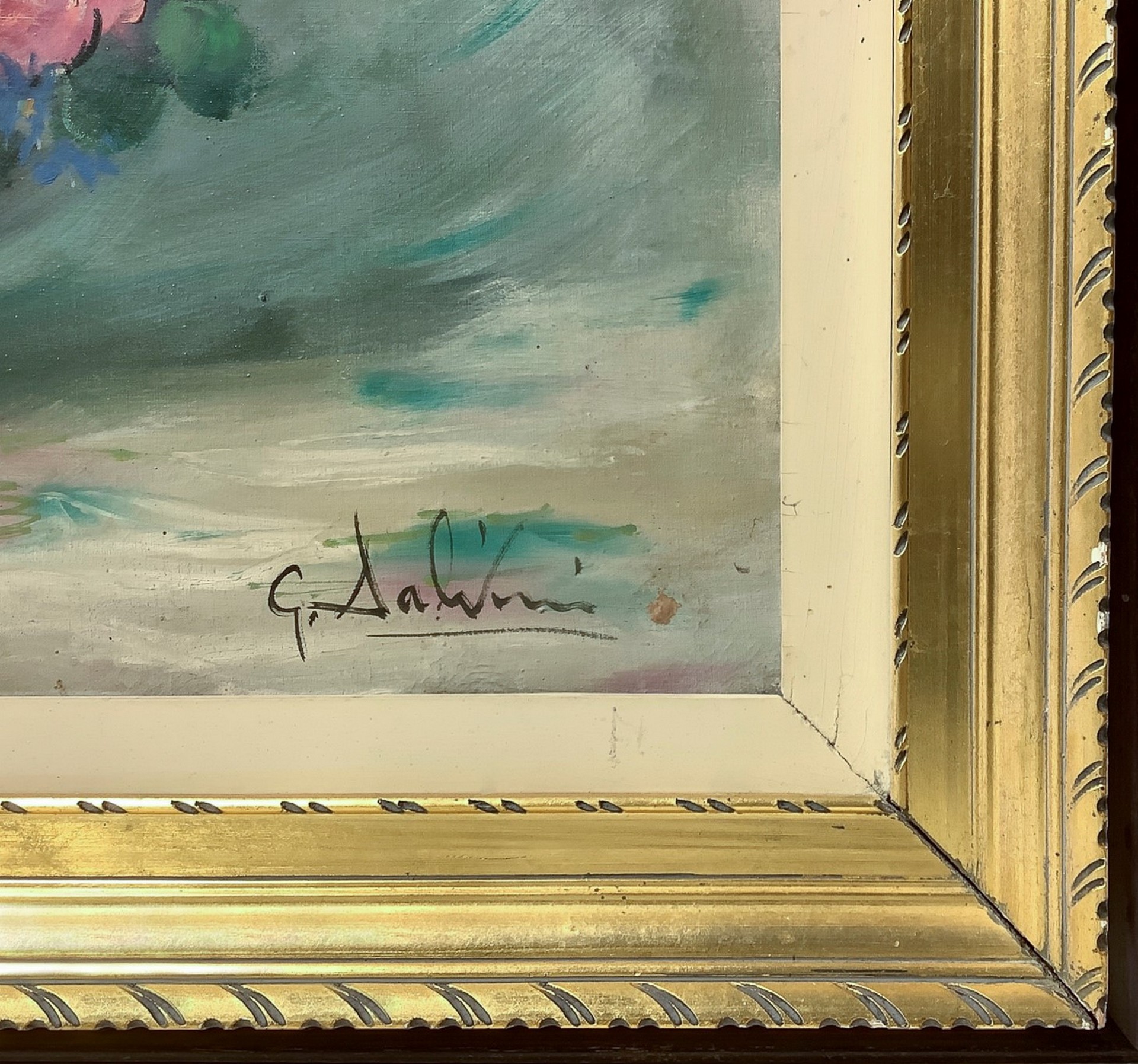 Natura morta di fiori in vasi 70x100 cm, in cornice 92x122 cm Dipinto a olio su tela Firmato in basso a destra G. Daliani.