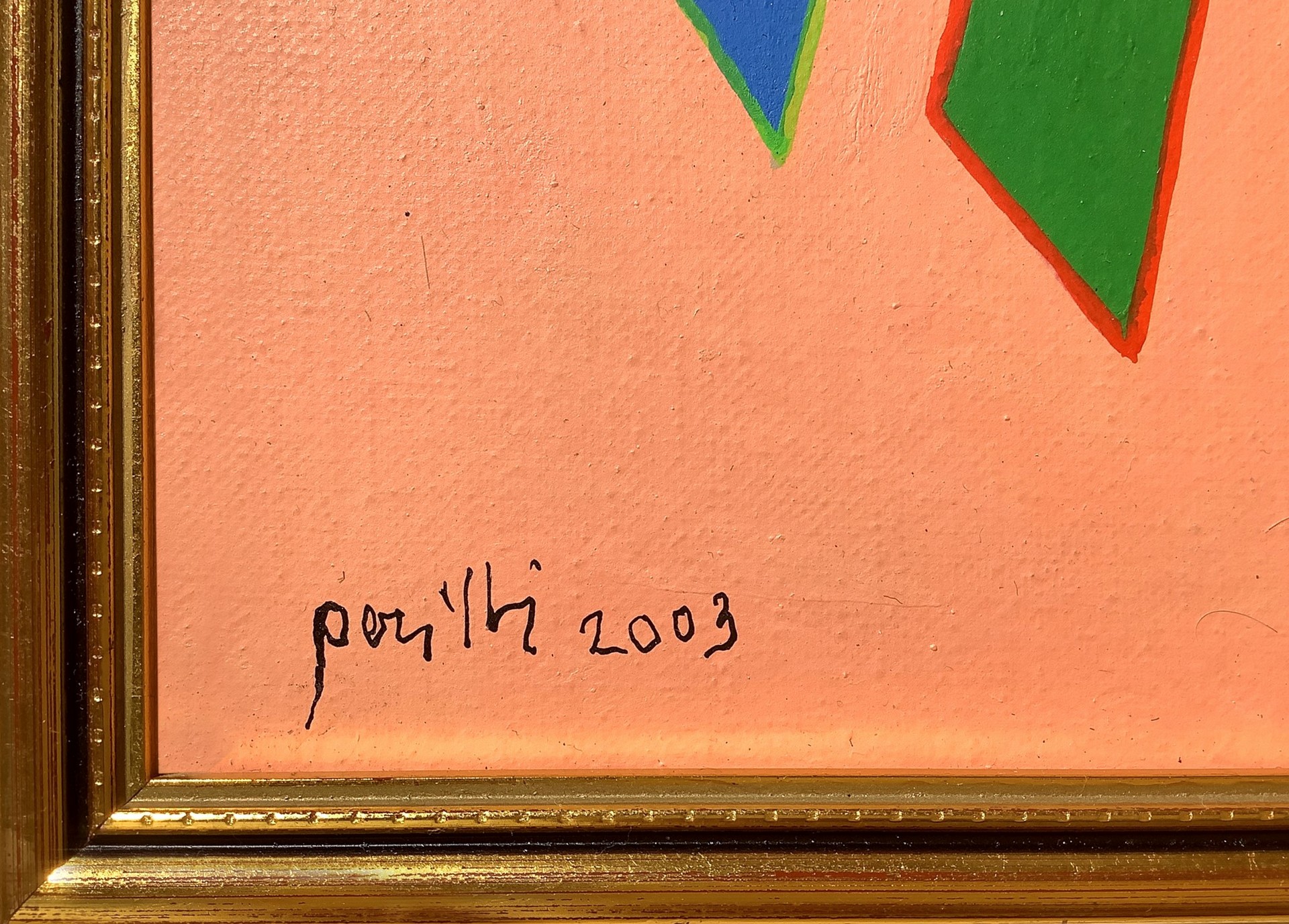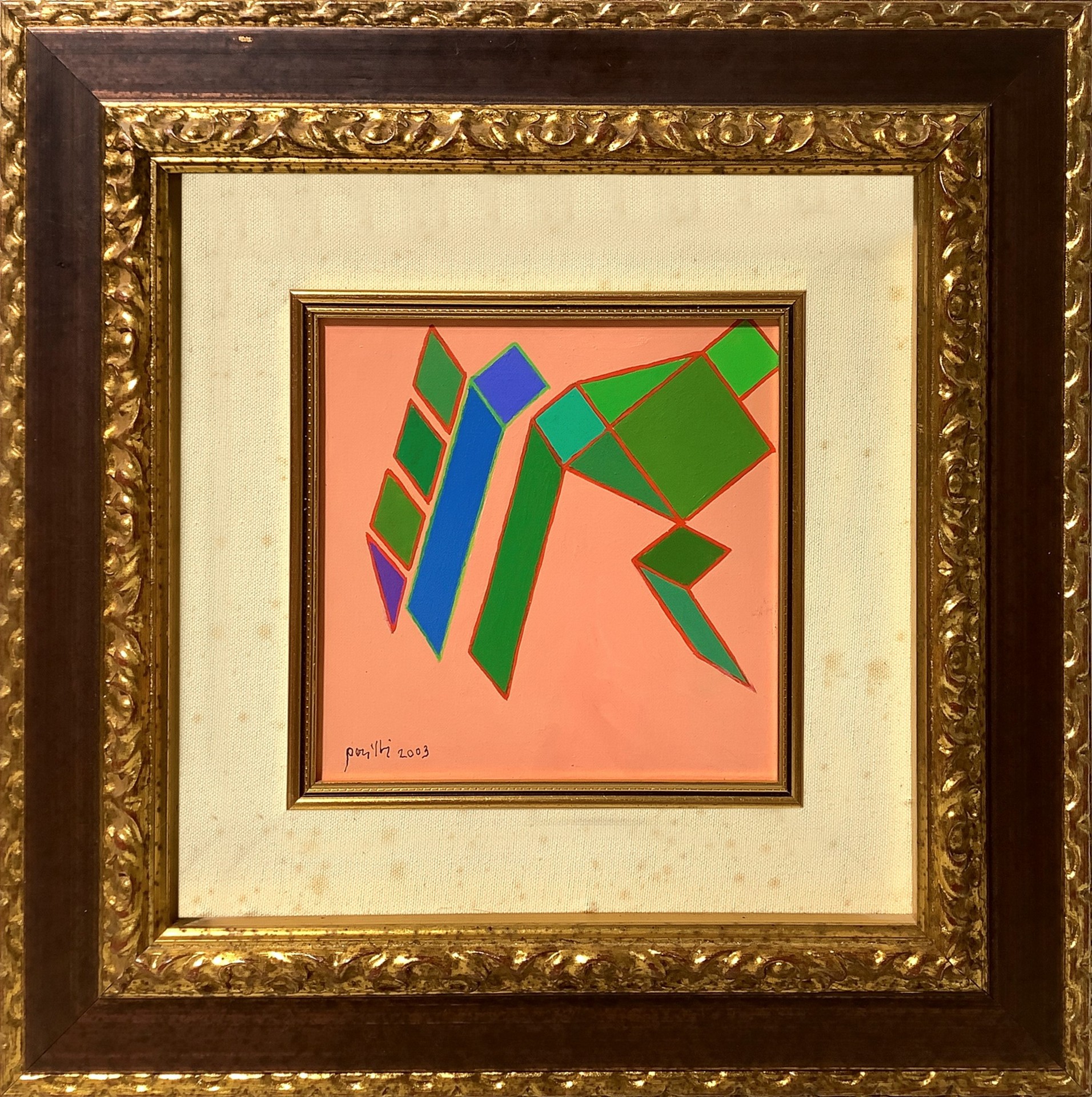 Perilli, Achille (Roma 1927-Orvieto 2021) - Raum, 2003 20x20 cm, in cornice 46x46 cm Tecnica mista su tela Opera numero 37 del 2003 del Catalogo Generale. Certificato e firma del pittore tramite la galleria Giovanni Disumma Roma. Firmato in basso a sinistra e datato. Sul retro firmato, datato e titolato Raum.