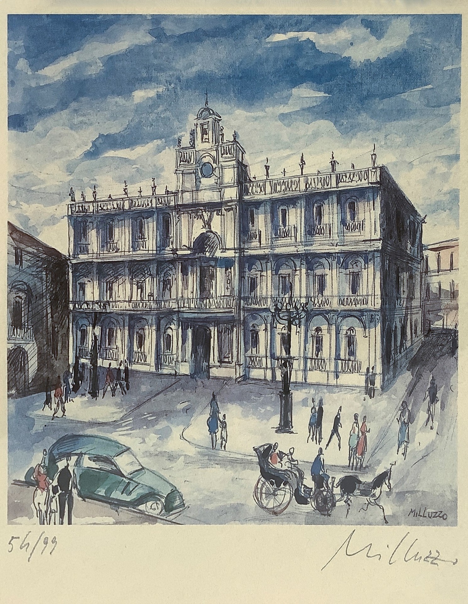 Milluzzo, Sebastiano (Catania 1915-Catania 2011) - Palazzo dell'Università di Catania, 20th century 55x39,5 cm Litografia 54/99
