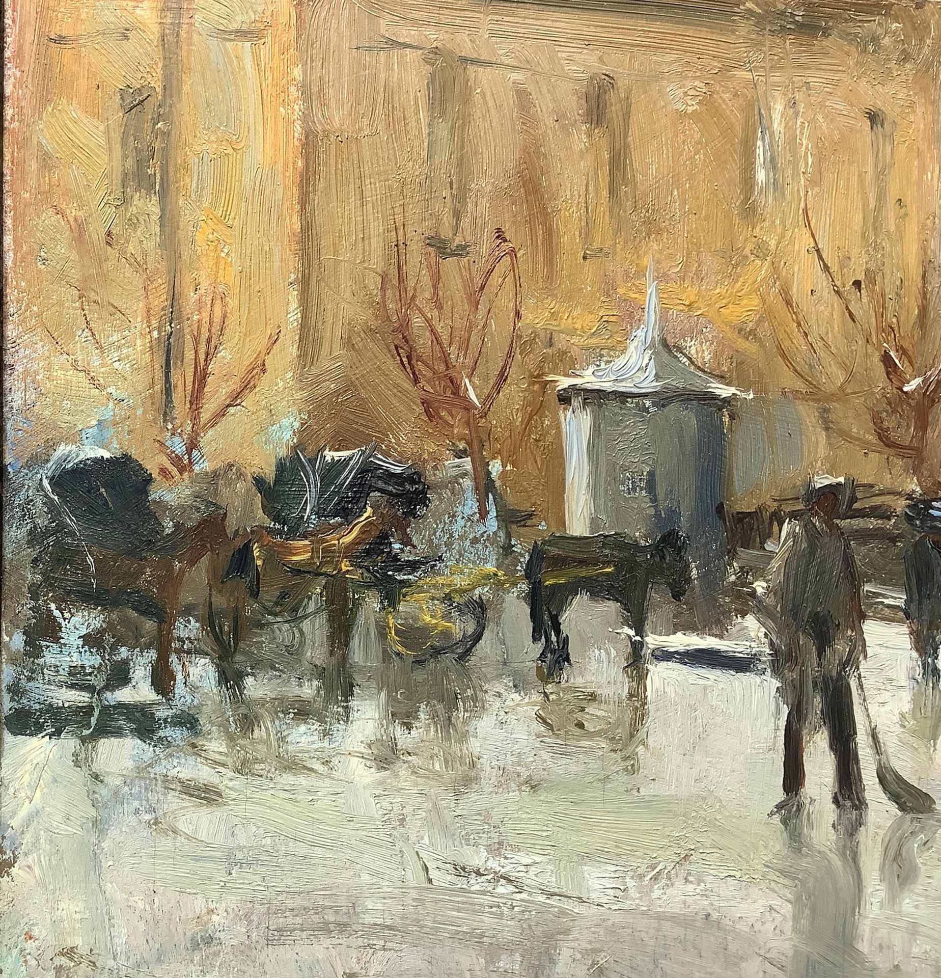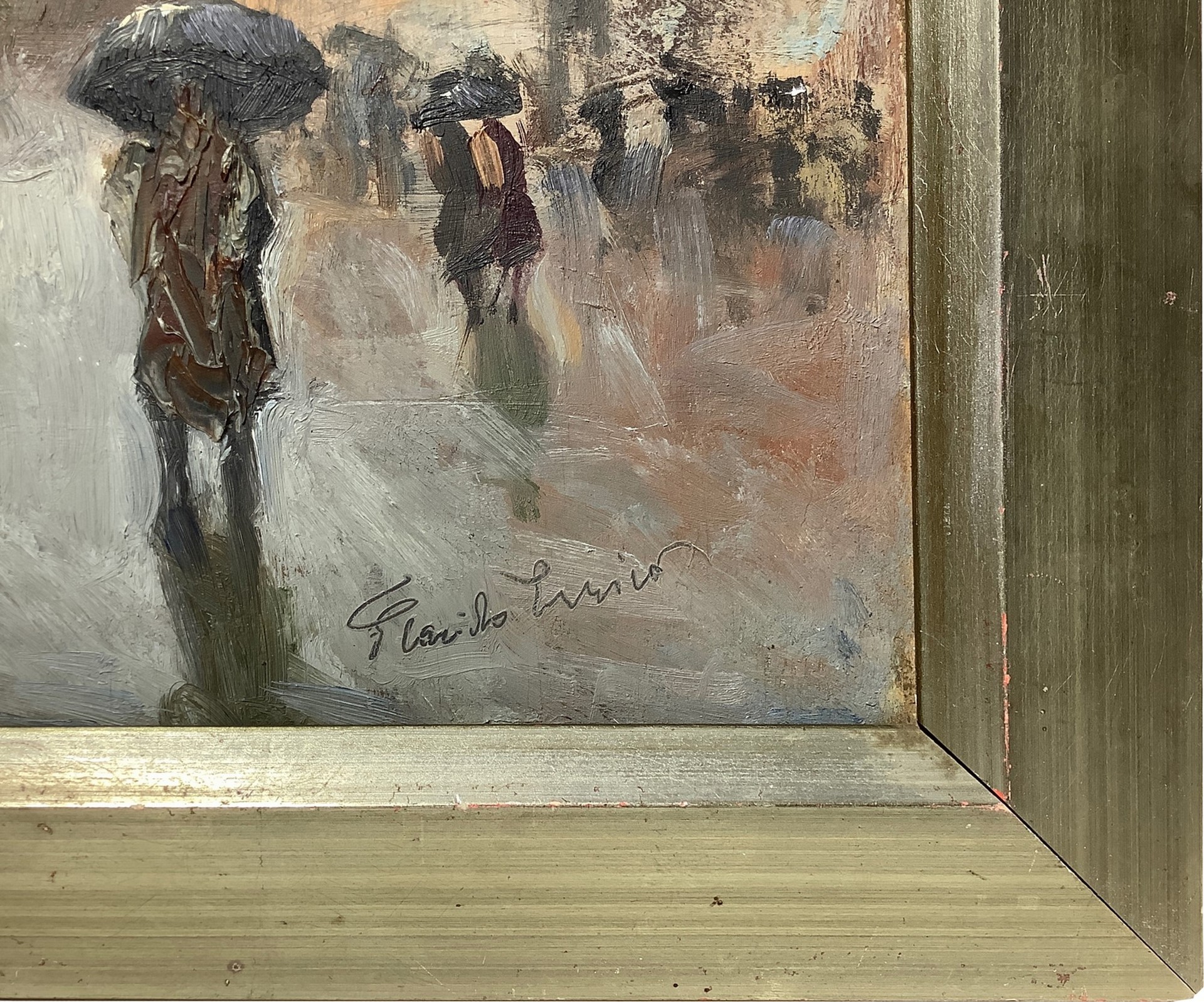 Placido, Errico (Napoli 1909-Portici 1983) - Personaggi sotto la pioggia Cm 30x40, in cornice cm 38x47 Olio su tavola Firmato in basso a destra. Scritte al retro, etichetta Galleria Catania Art Gallery (Catania). Opera esposta nella mostra Hello Napoli, svoltasi a Catania dall'11 dicembre 2019 all'11 gennaio 2020.