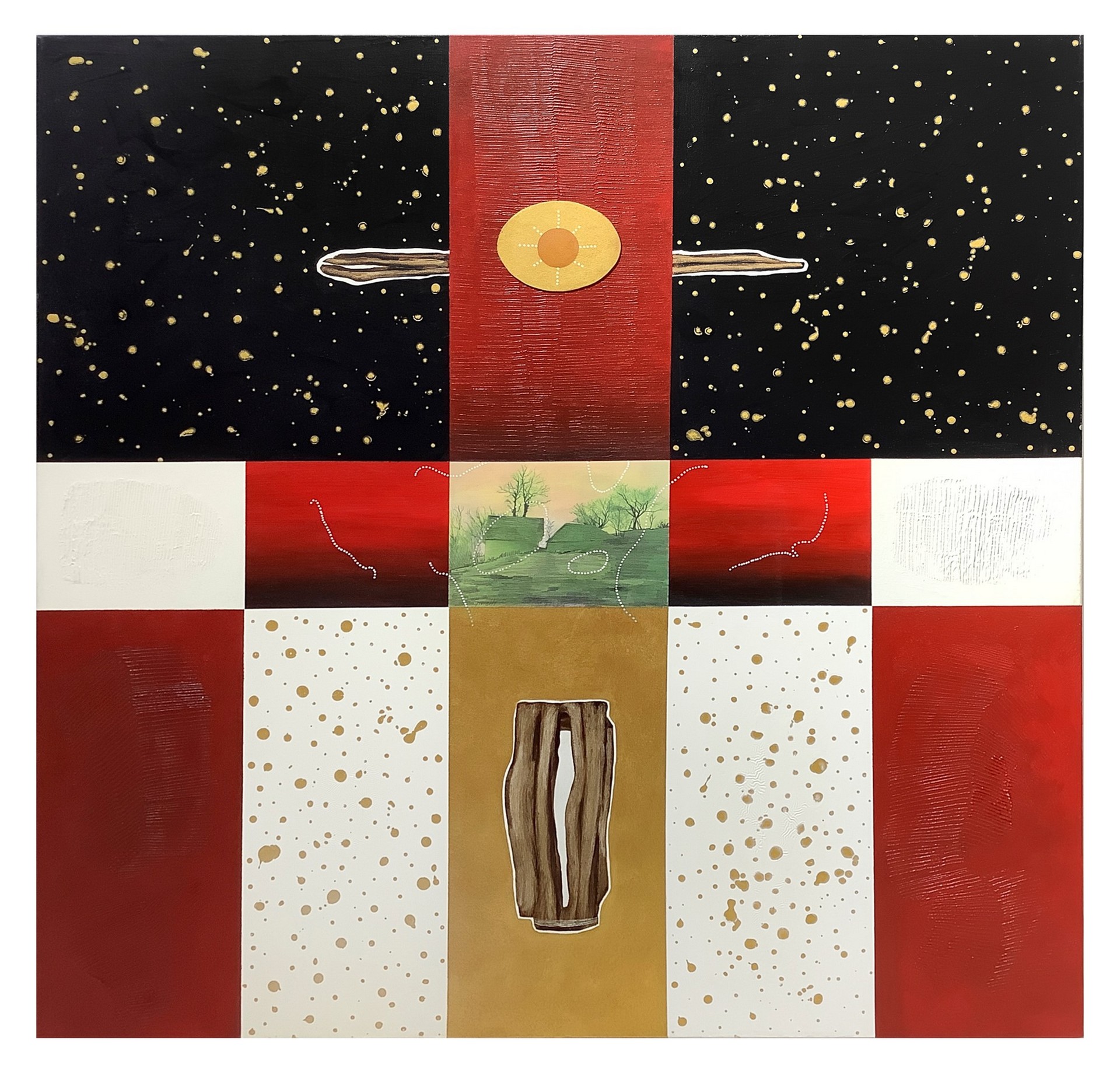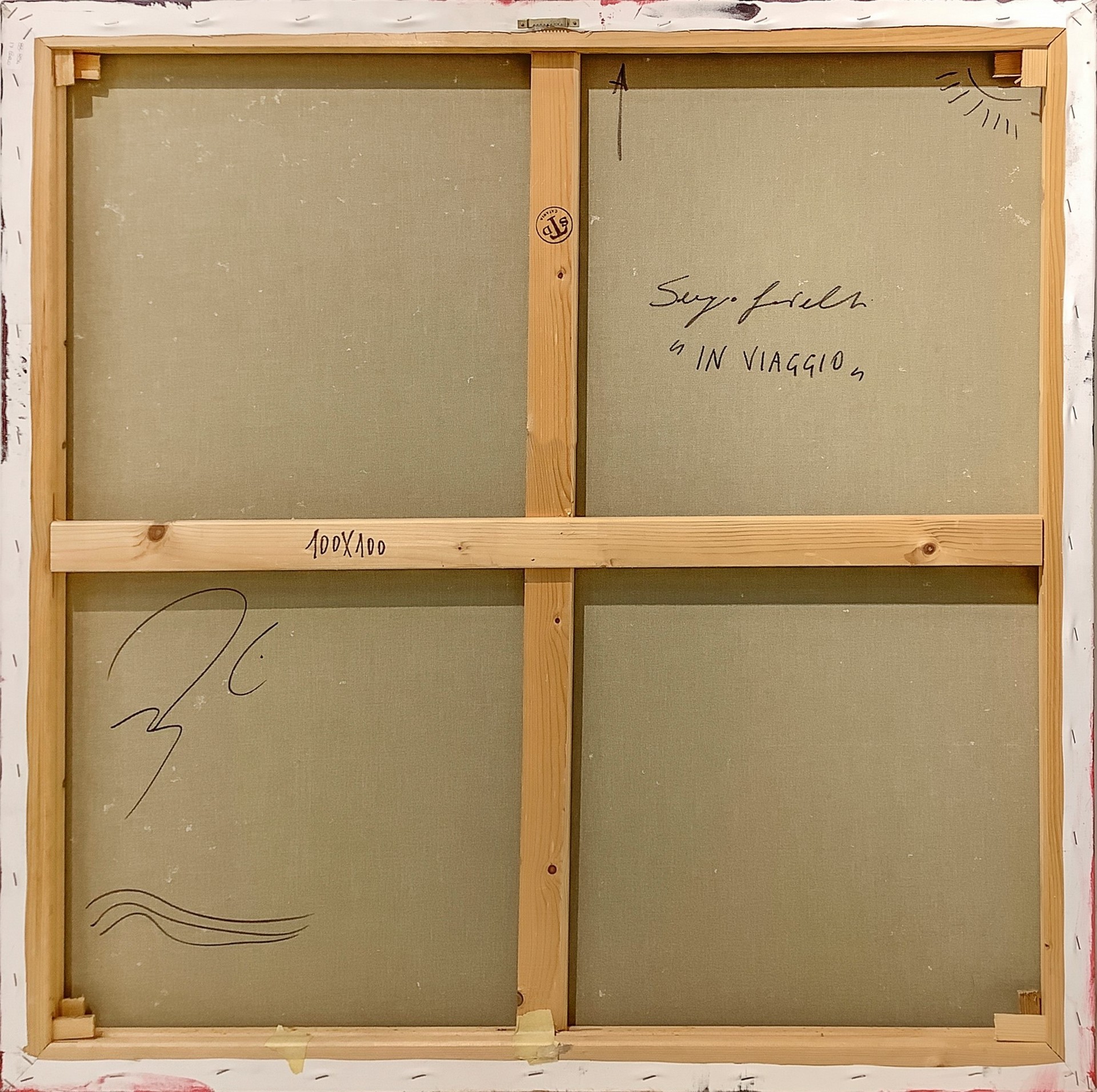 Gioielli, Sergio (Cosenza 1956) - Senza titolo, 20th century Cm 100x100 Dipinto ad olio e tecnica mista su tela.