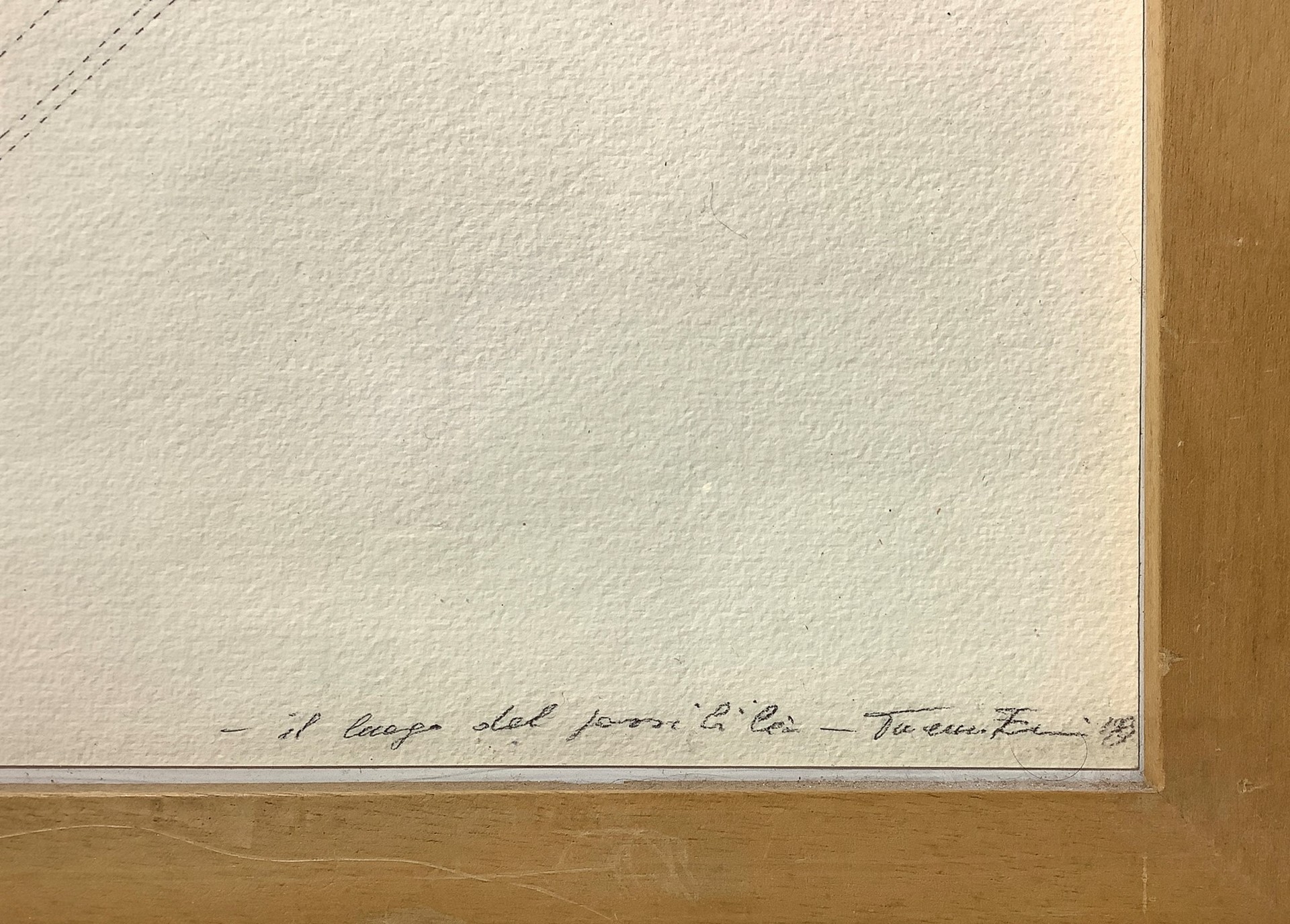 Ferrari, Vincenzo (Cremona 1941-Sondalo 2012) - Il luogo del possibile, 1979 35x50 cm Tecnica mista su carta pesante Firmato e datatato in basso a destra. Provenienza Collezione privata. Certificato di garanzia e provenienza rilasciato da Martini Studio d'Arte, Casa d'Aste in Brescia.