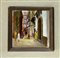 Personaggi in una strada in cornice 37x37 cm Dipinto a olio su lastra d'argento Firmato C. Cappuro.
