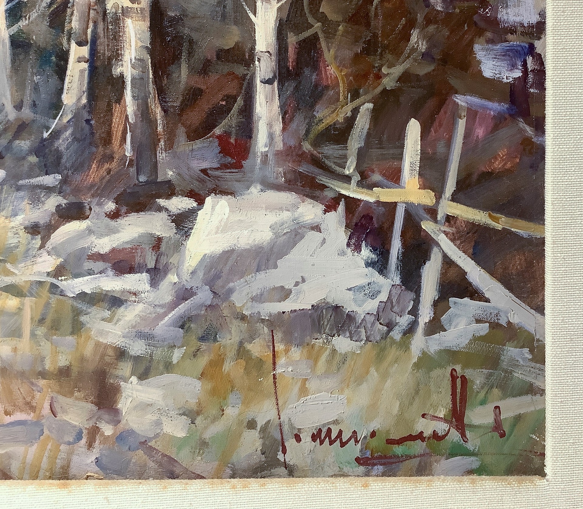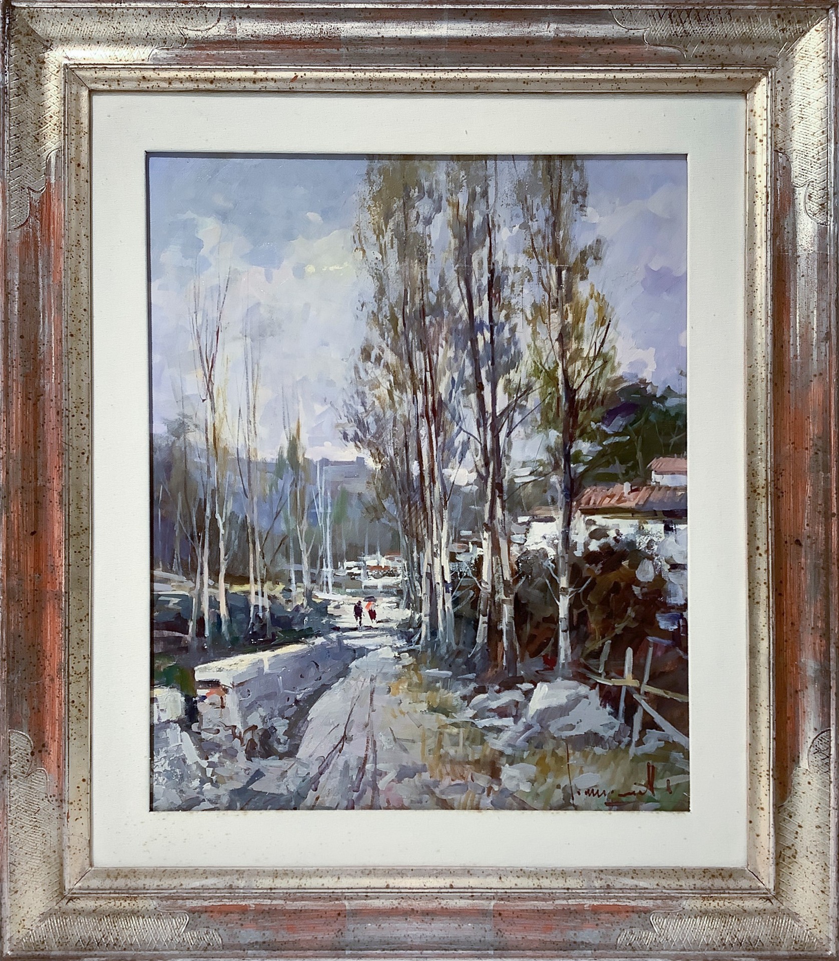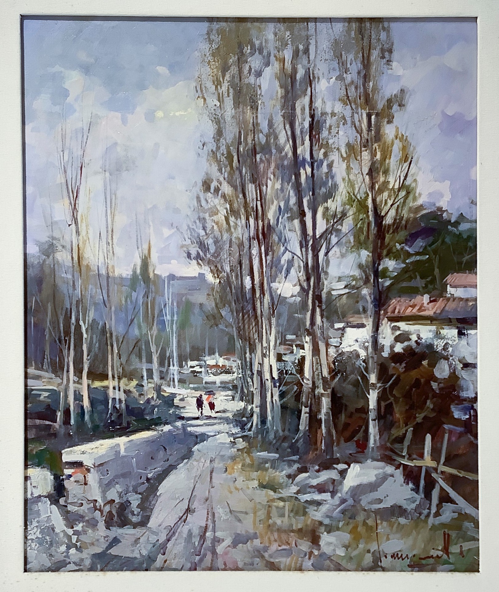 Simonetti, Claudio (1929) - Paesaggio con alberi e case 30x40 cm, in corncie 54x64 cm Dipinto a olio su cartone Firmato in basso a destra Claudio Simonetti Questo lotto è soggetto a diritto di seguito