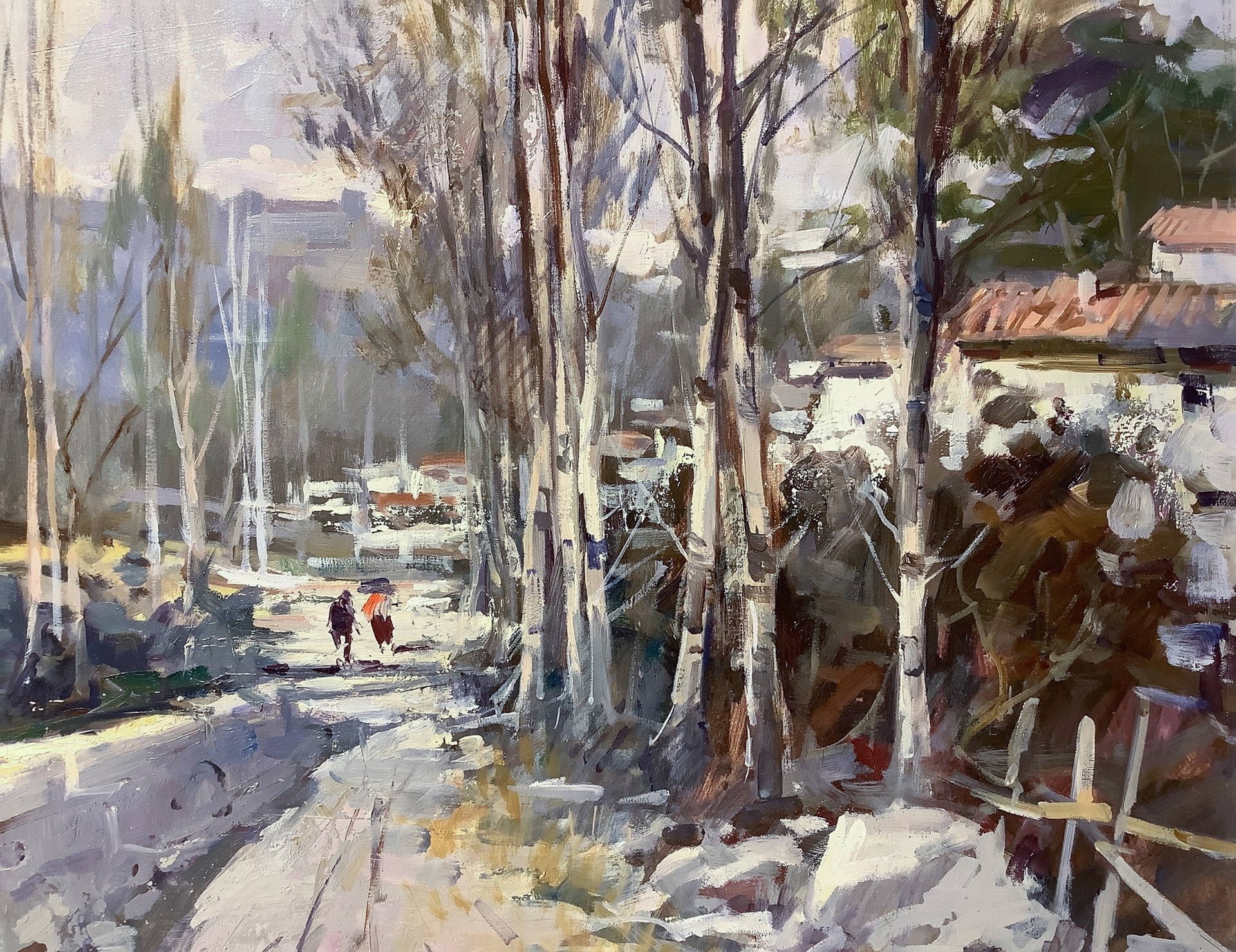 Simonetti, Claudio (1929) - Paesaggio con alberi e case