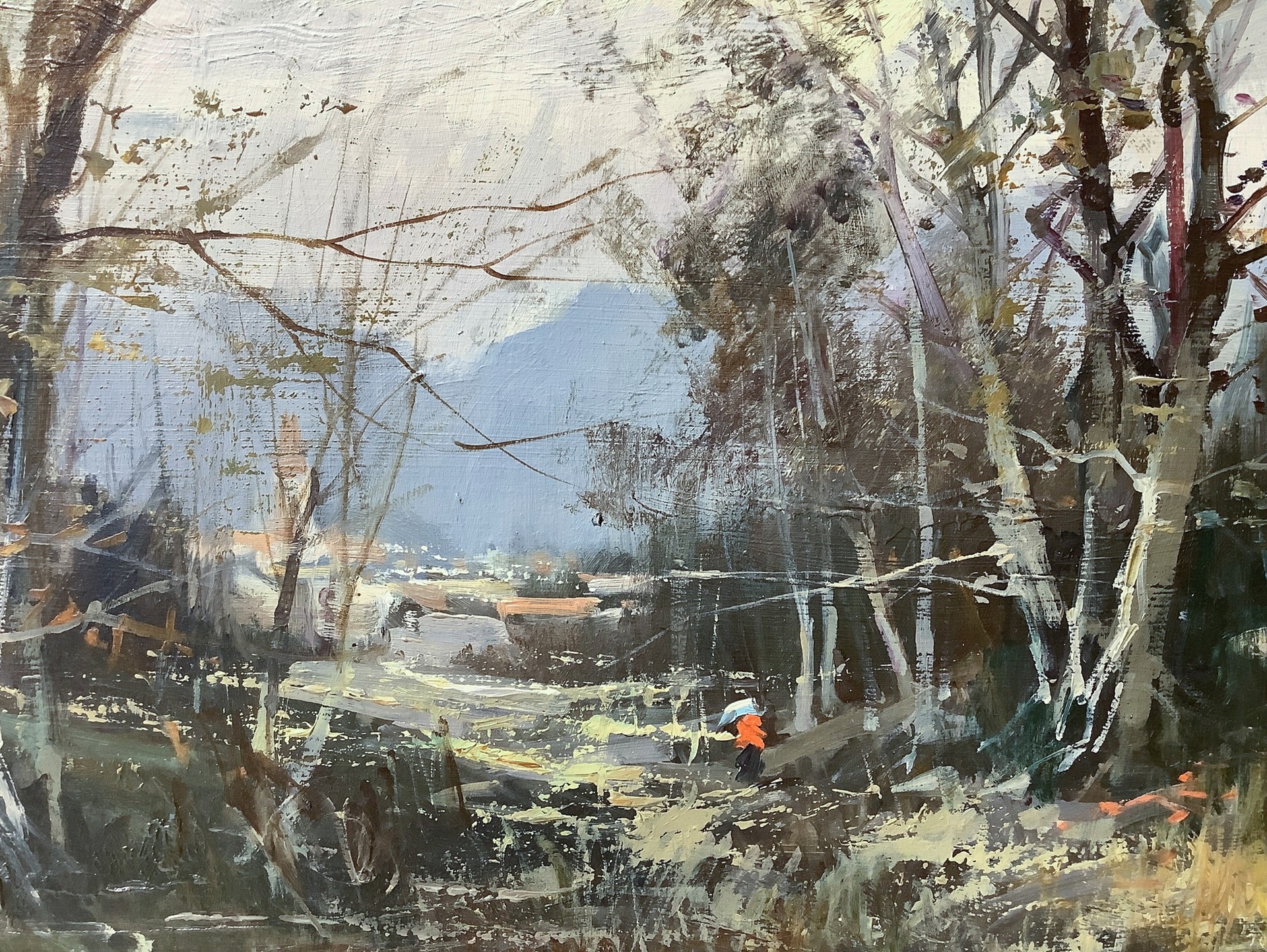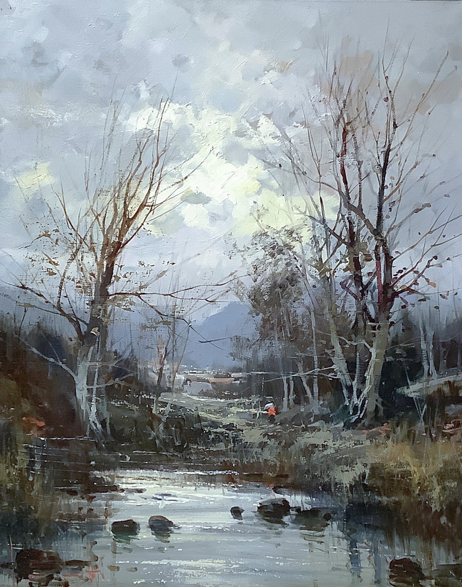 Simonetti, Claudio (1929) - Fiume con alberi autunnali e spogli