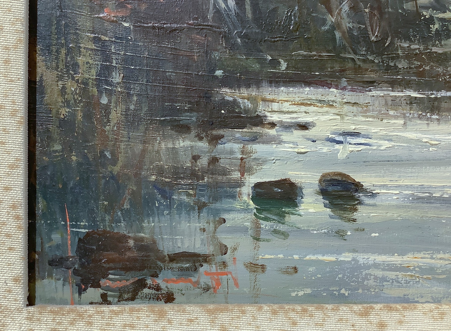 Simonetti, Claudio (1929) - Fiume con alberi autunnali e spogli 50x40 cm, in cornice 65x74 cm Dipinto a olio su tela Firmato in basso a sinistra e sul retro Claudio Simonetti Questo lotto è soggetto a diritto di seguito