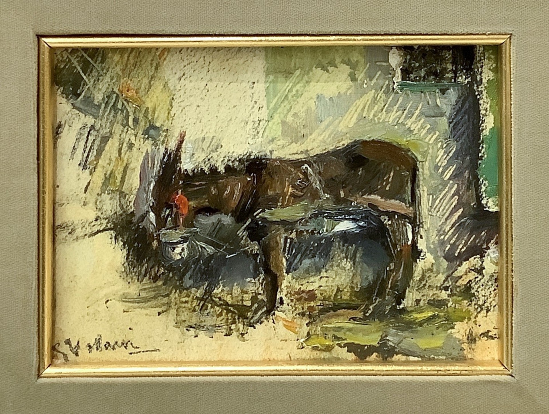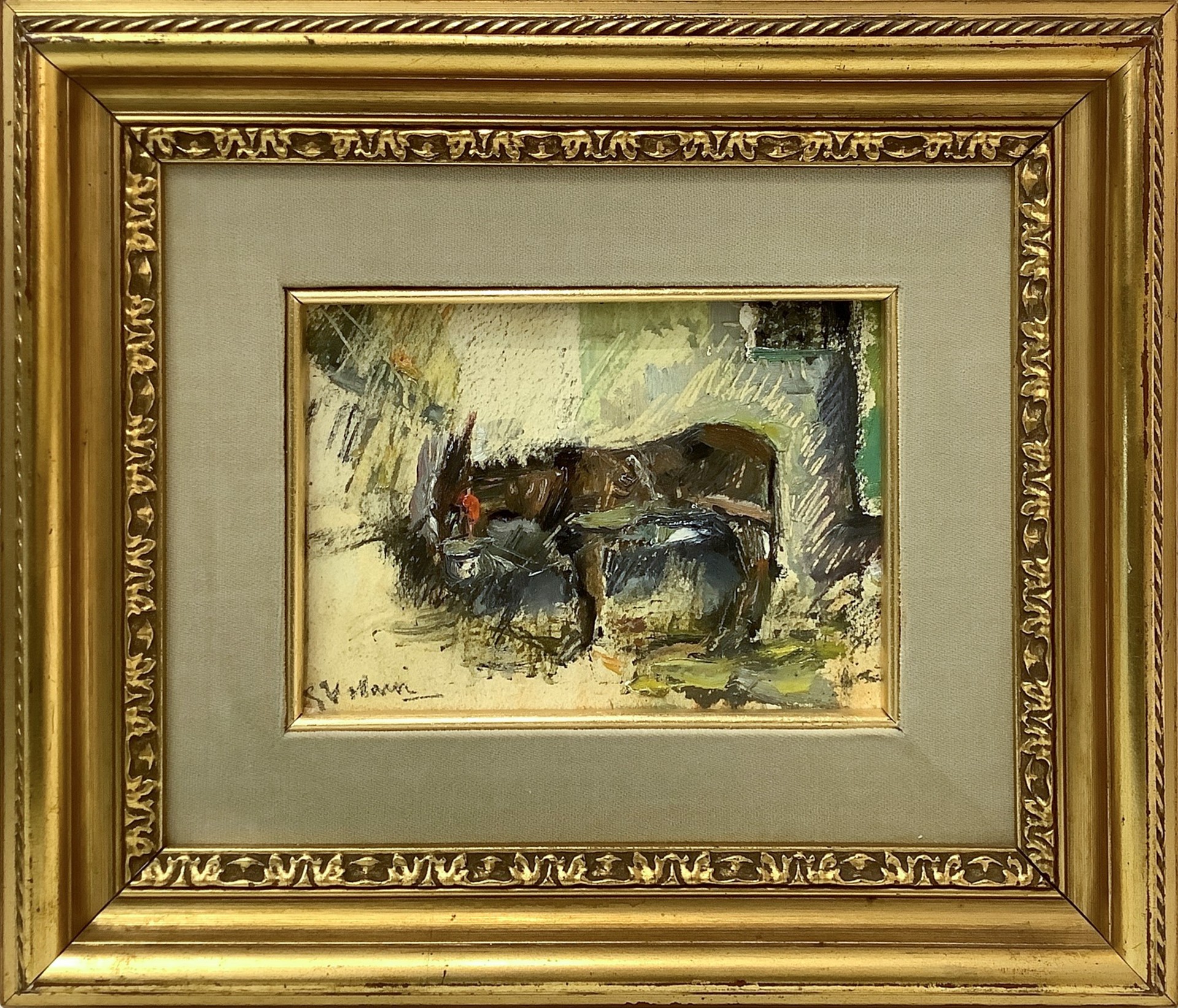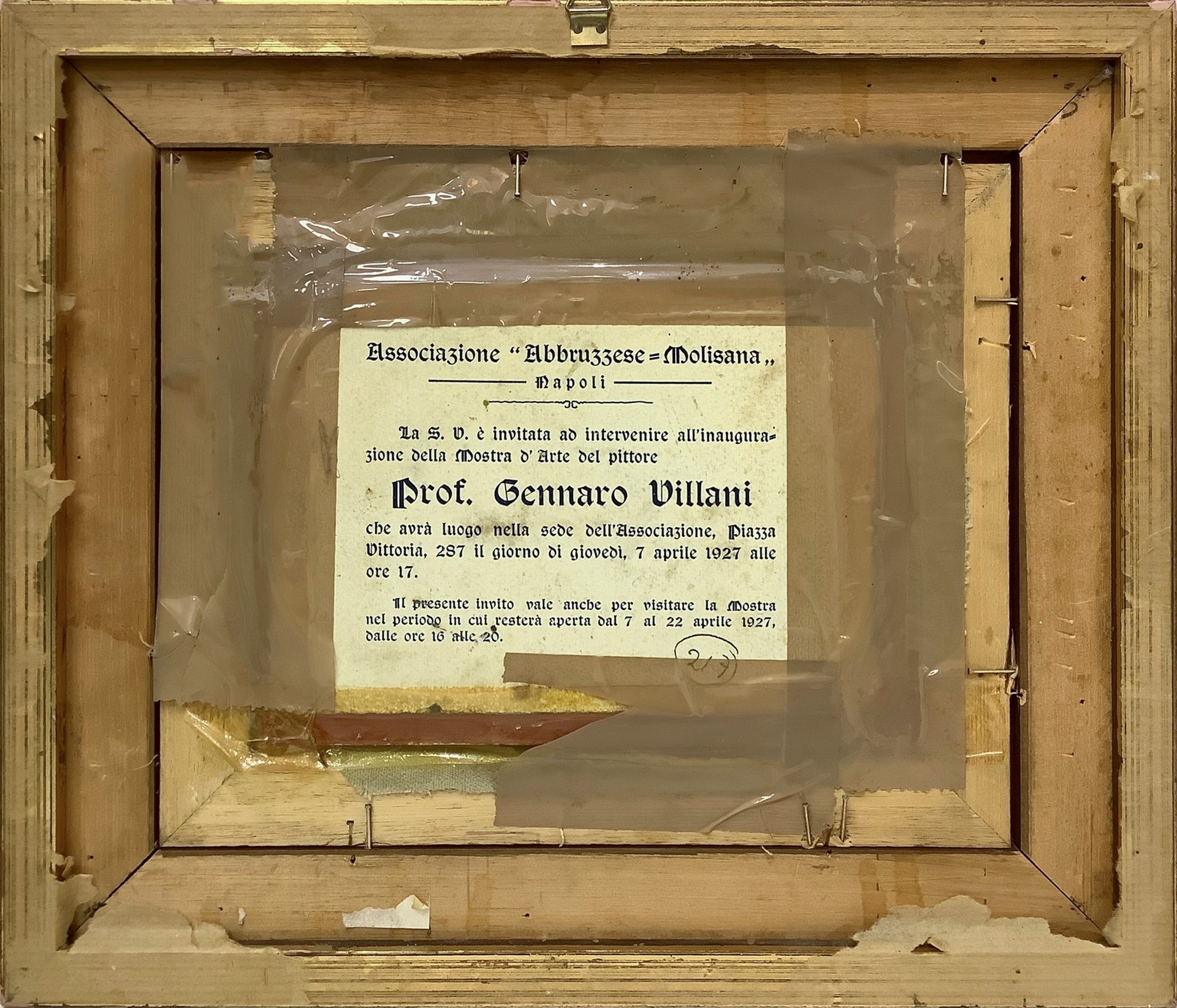 Villani, Gennaro (Napoli 4 ottobre 1885-Napoli 25 dicembre 1948) - Asino 15x20 cm, in cornice 27x32 cm Dipinto a olio su cartone Opera esposta alla mostra personale dell'artista svoltasi dal 7 aprile al 22 aprile 1927 presso Associazione Abruzzese-Molisana di Napoli, come da relativo invito al retro dell'opera.