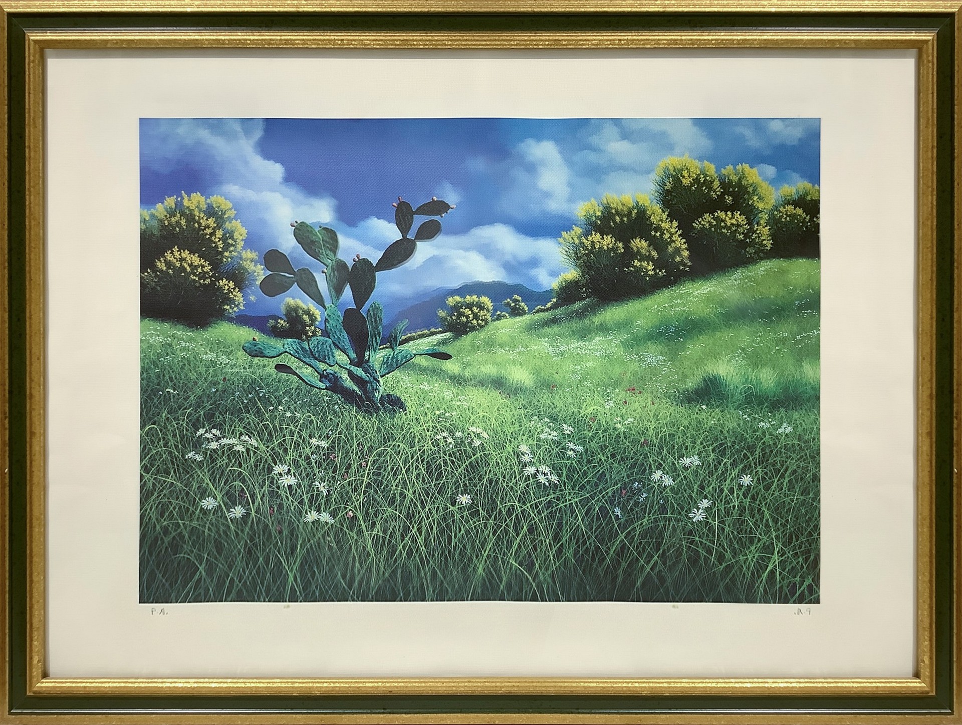 Navarra, Antonio (Roma 1965) - Ginestre e fico d'india in cornice 57x67 cm Litografia Prova d'autore firmata A. Navarra Questo lotto è soggetto a diritto di seguito
