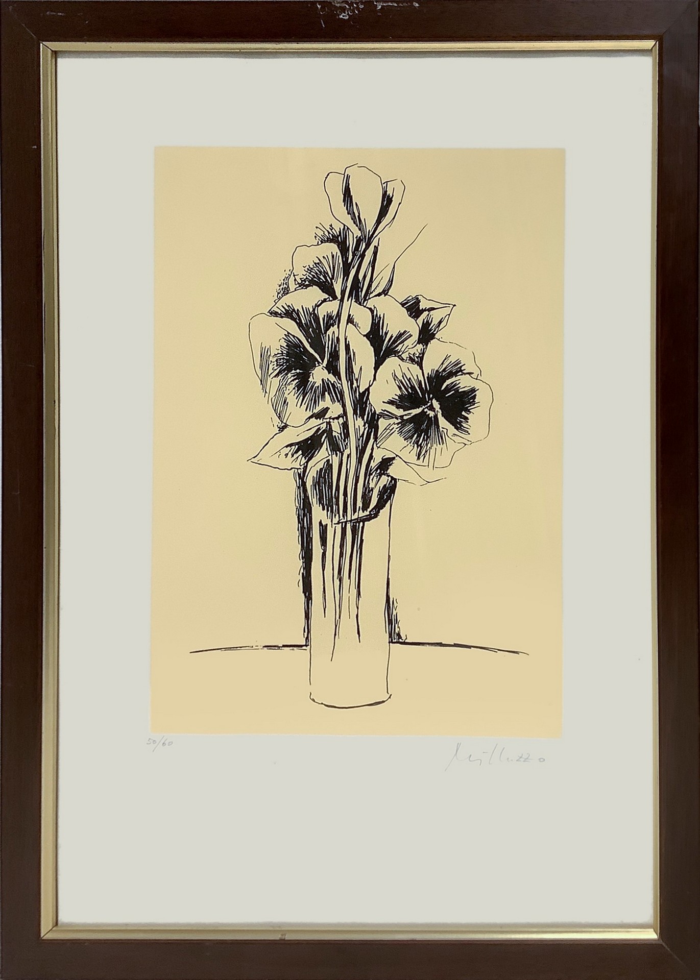 Milluzzo, Sebastiano (Catania 1915-Catania 2011) - Fiori in vaso in cornice 54x39 cm Litografia 50/60