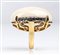 oro giallo 18k, incastonato con cabochon di corallo pelle d'angelo (corallium secundum) affiancato da diamanti taglio brillante 0,85 ct circa, G, VVS-VS. Punzonato "750". Dimensioni fronte 35 x 30 mm. Peso 31 g. Misura IT 15,5 - Misura US 7,5. Stato di conservazione: ***** eccellente.