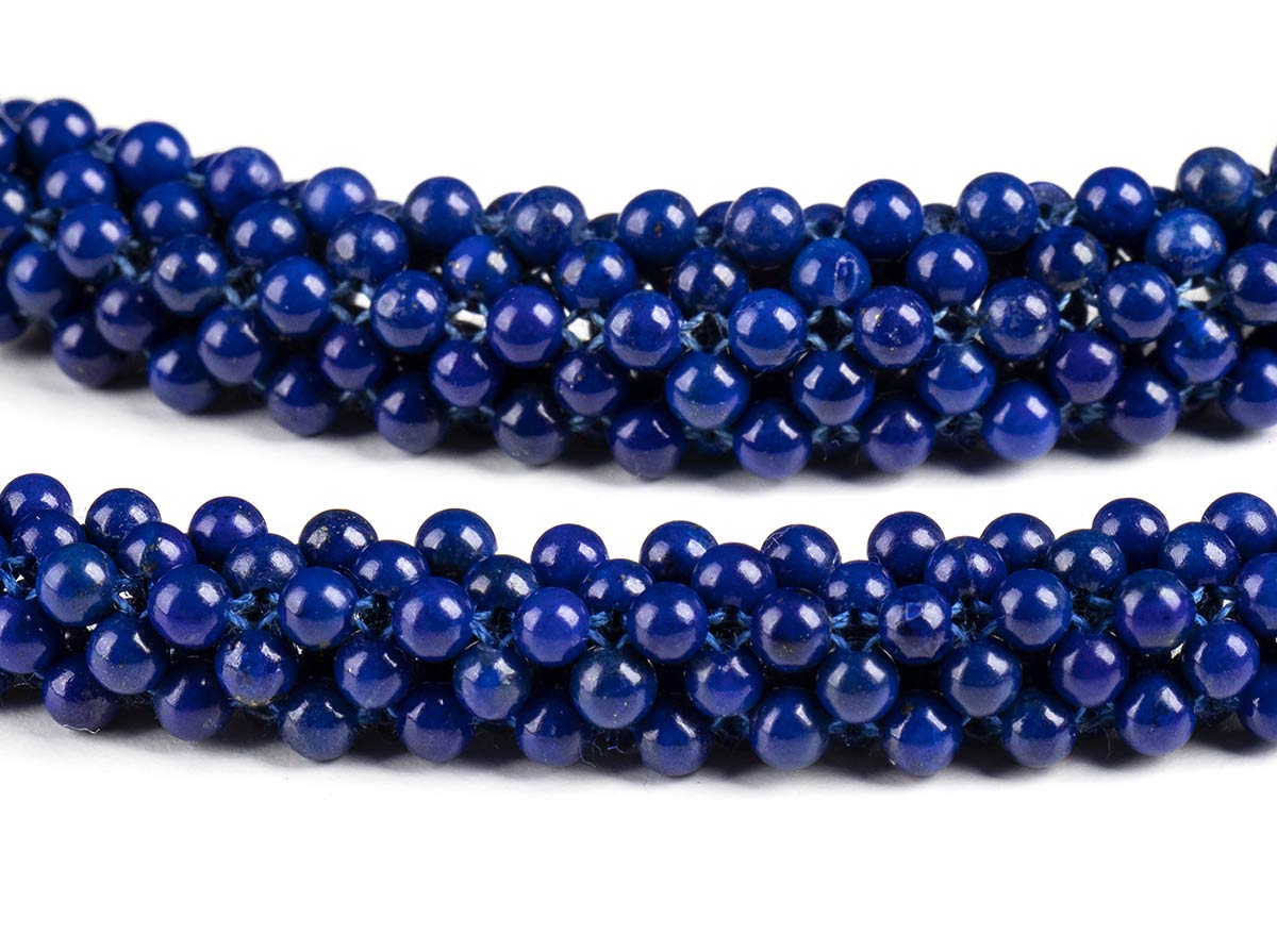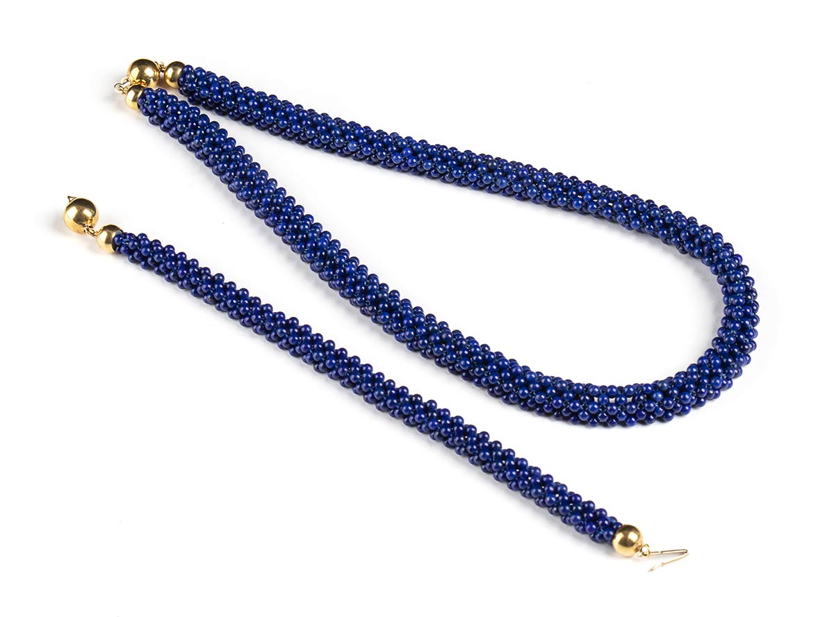Girocollo e bracciale a maglia tessita in lapislazuli ed oro giallo