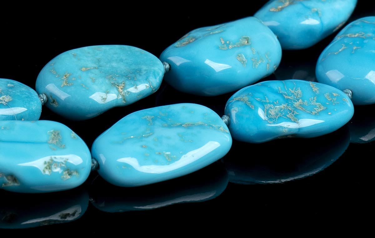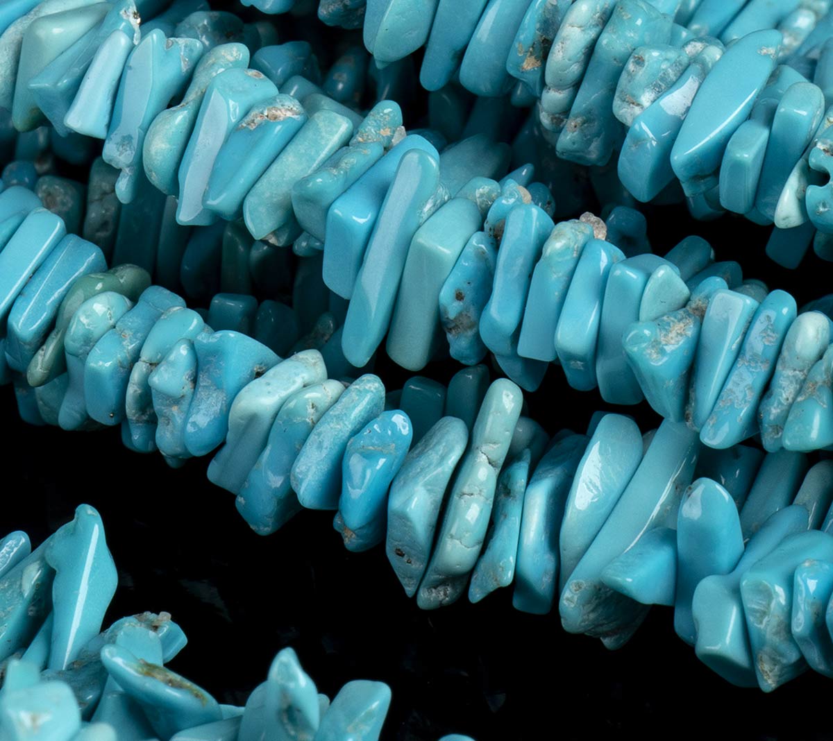 1 girocollo in ciottoli di turchese e madreperla, montaggio in argento 925/1000, lunghezza 76 cm; 3 bracciali in turchese ed ambra chiarificata, lunghezze 20 - 22 - 19 cm. Peso totale 476 gr circa. Stato di conservazione: ***** eccellente.