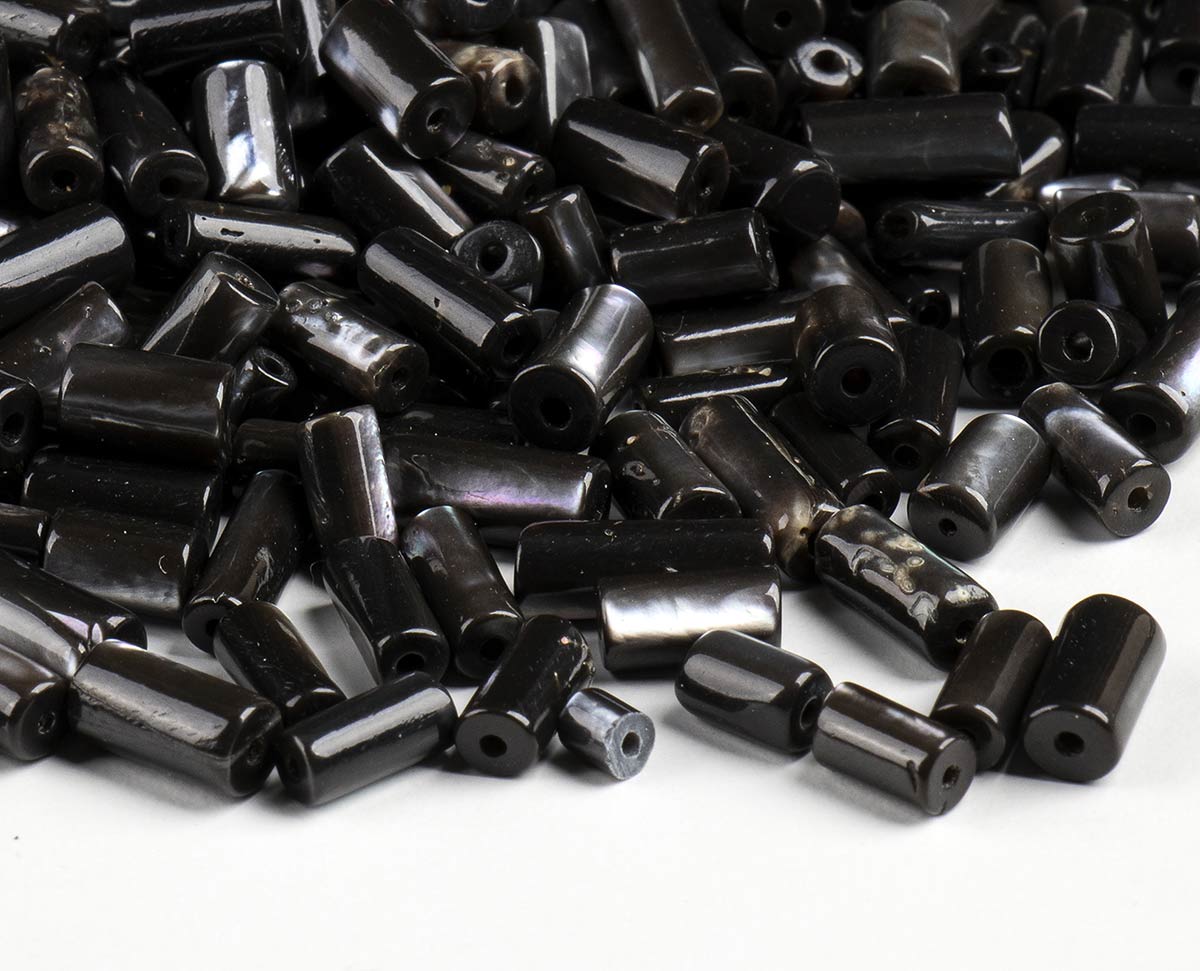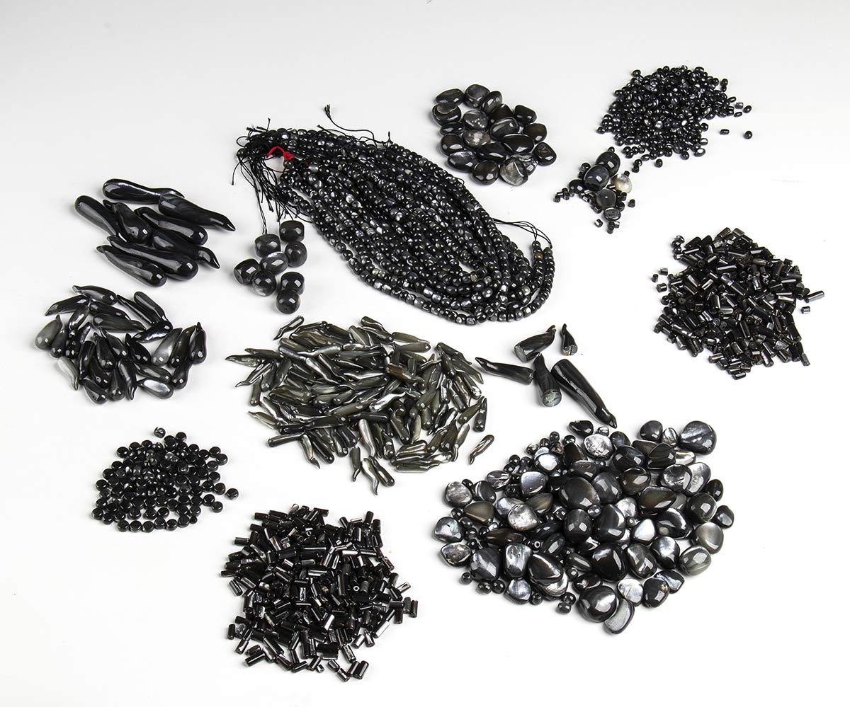 10 fili slegati di barilotti; lotto di corni scaramantici di varie dimensioni; ciottoli forati di varie dimensioni. Peso totale 1400 gr circa. Stato di conservazione: ***** eccellente.