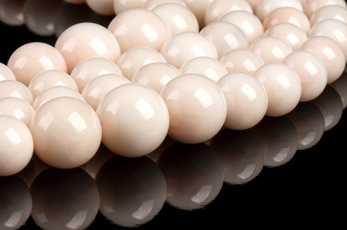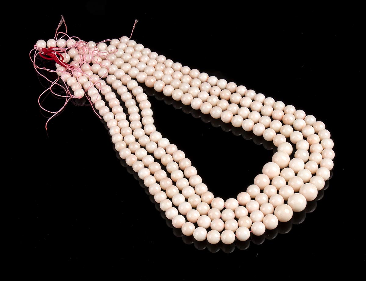 4 fili slegati di sfere di corallo rosa
