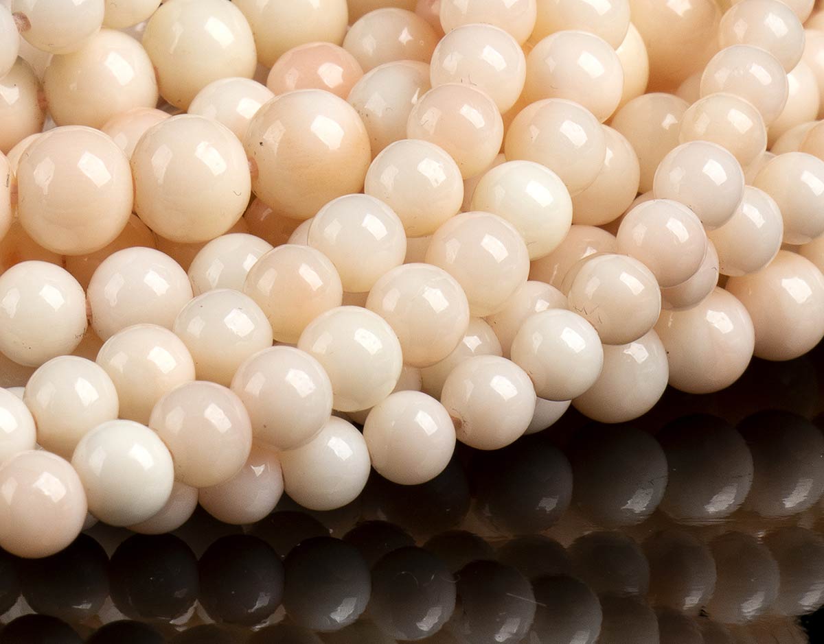 22 fili slegati di sfere di corallo rosa