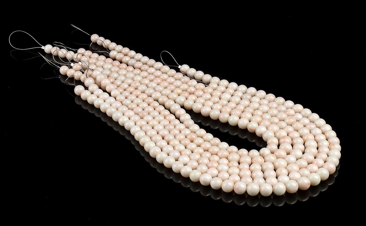 (corallium secundum). Diametro da 8 a 9 mm. Lunghezze 40, 46, 50 cm. Peso totale 284 gr circa. Stato di conservazione: ***** eccellente.