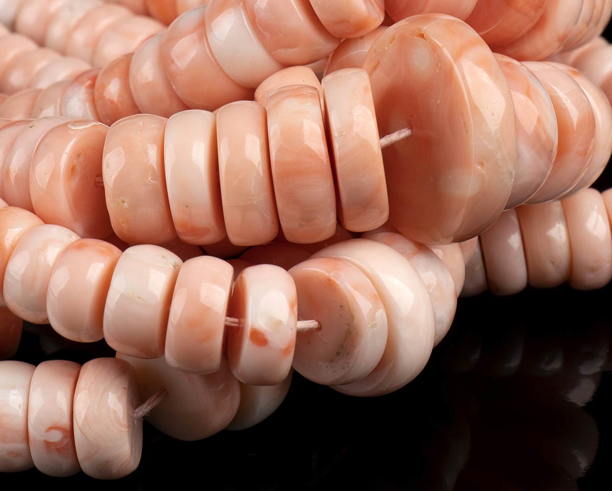 (corallium regale). Diametro da 7 a 22 mm. Lunghezza 60 cm. Peso totale 547 gr circa. Stato di conservazione: ***** eccellente.