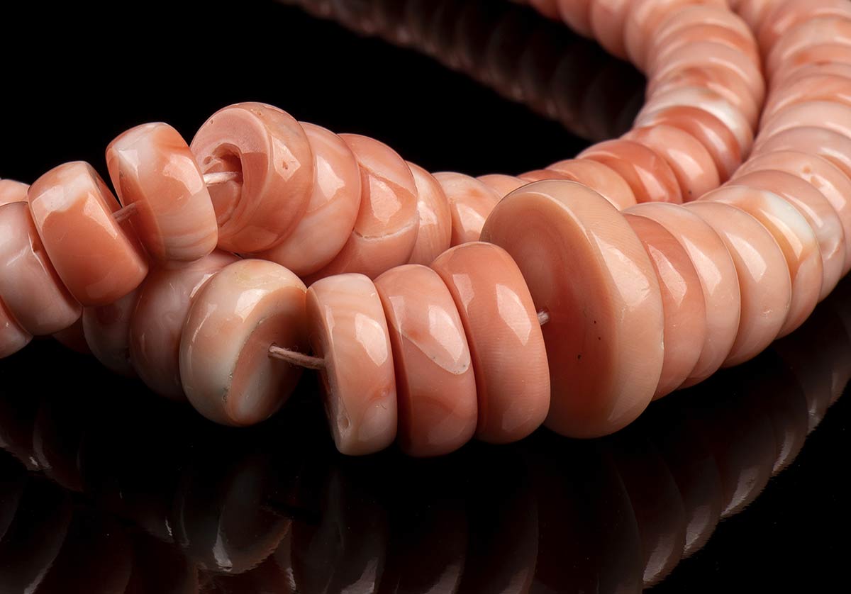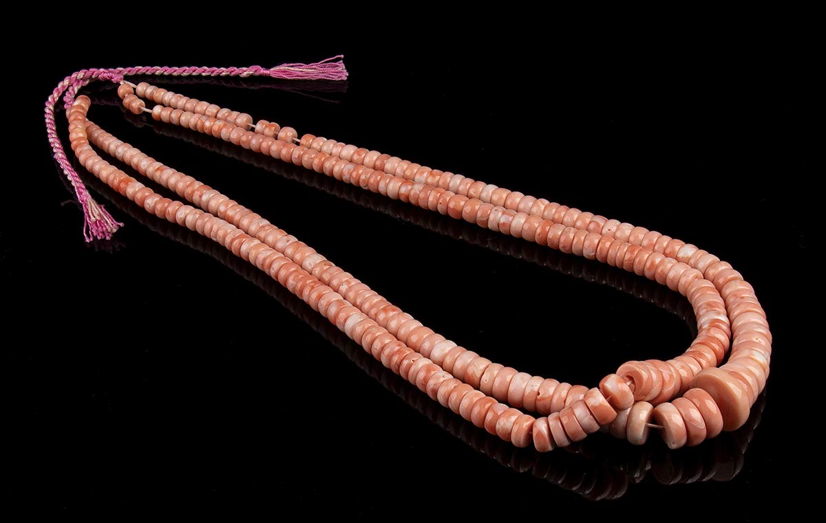 (corallium regale). Diametro da 5,5 a 17 mm. Lunghezza 62 cm. Peso totale 205 gr circa. Stato di conservazione: ***** eccellente.